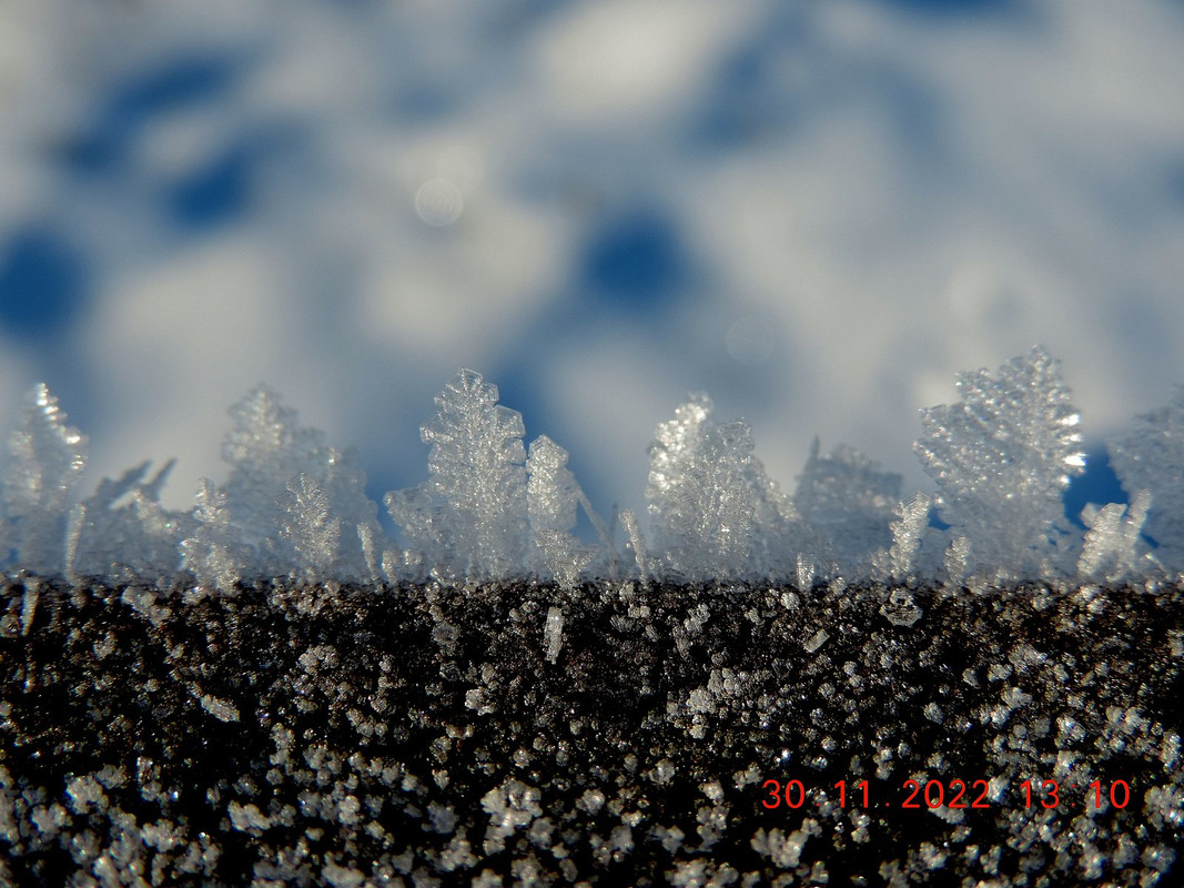 За период морозной погоды наросла кристаллическая изморозь на поверхности снежного покрова, на траве, кустарниках, ветвях деревьев.
