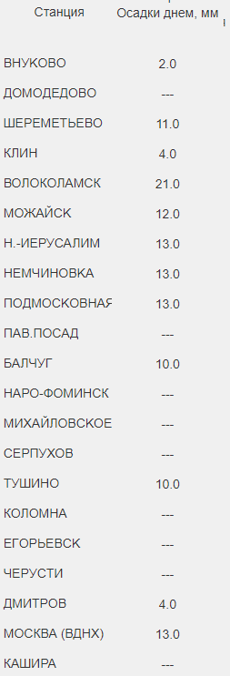 Осадки в МО вчера 20 августа днем (до 21-00) от Веселого Роджера