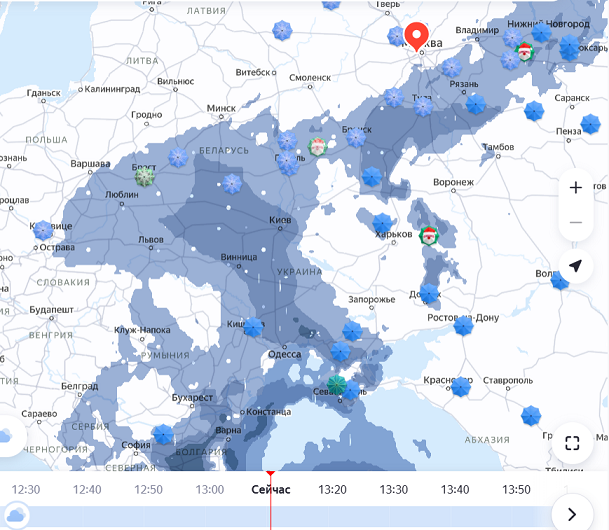 Приближается тёплый фронт. К вечеру и в Москве -3°...-5° будет.