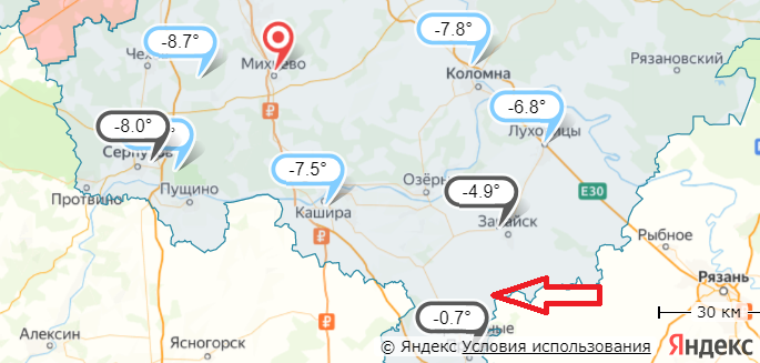 На крайнем юге МО сейчас близко к оттепели, тогда как на севере МО двузначные минуса