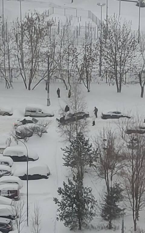 С утра многосерийное кино из окна, как автолюбители празднуют "праздник снега"