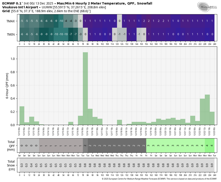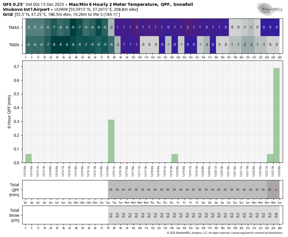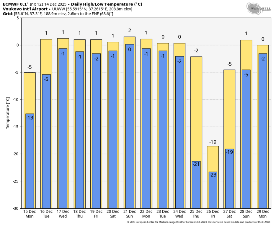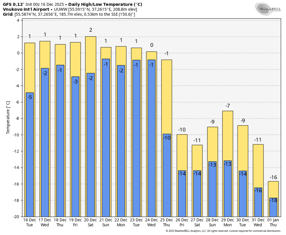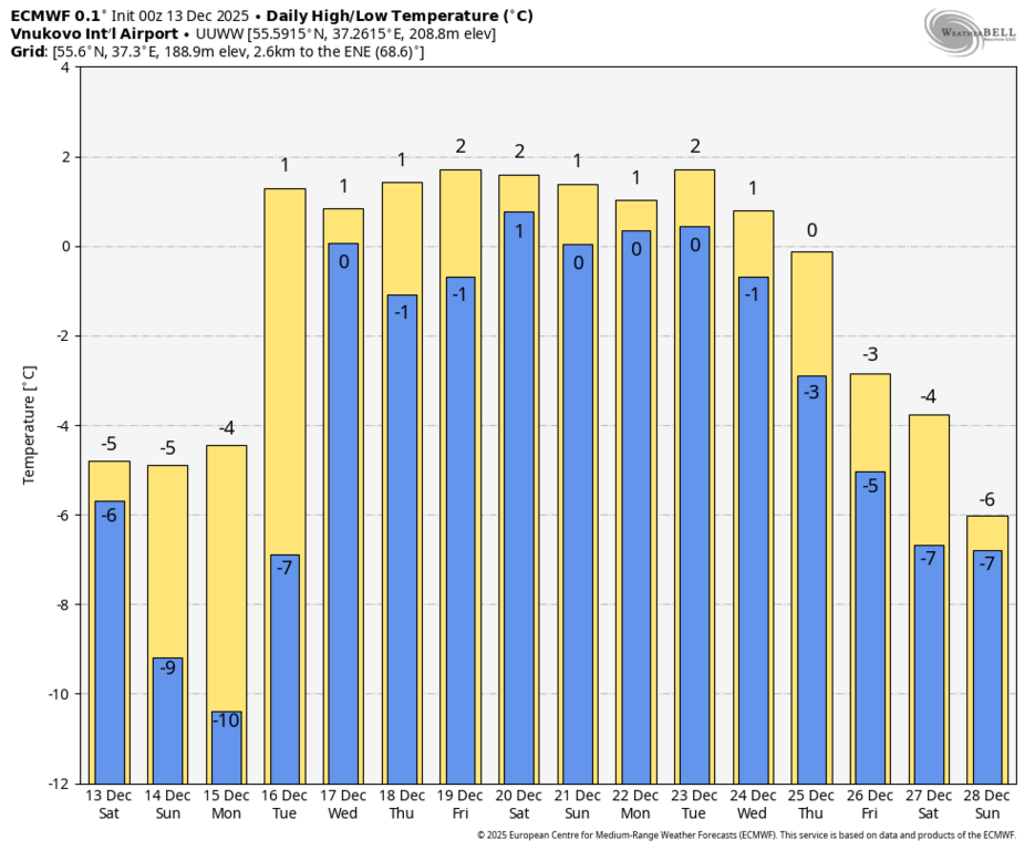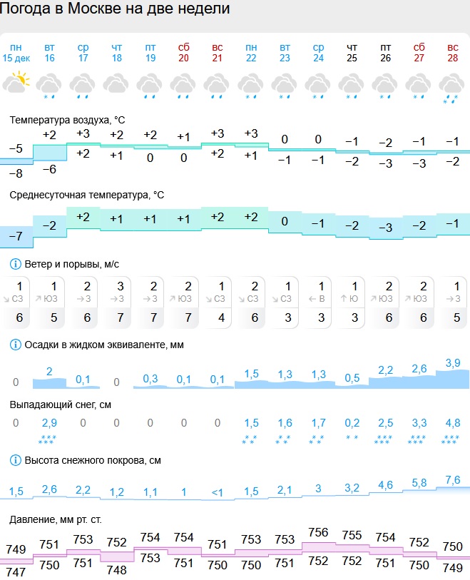 Теплый декабрь все таки для Москвы ожидается окончательно. Никаких морозов не видно.