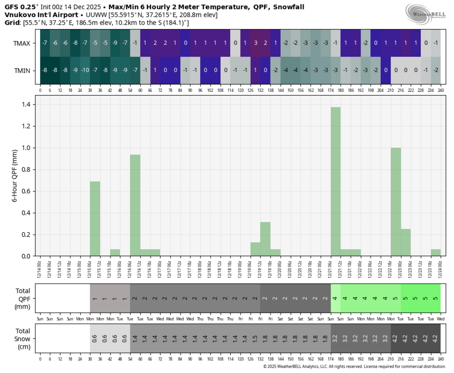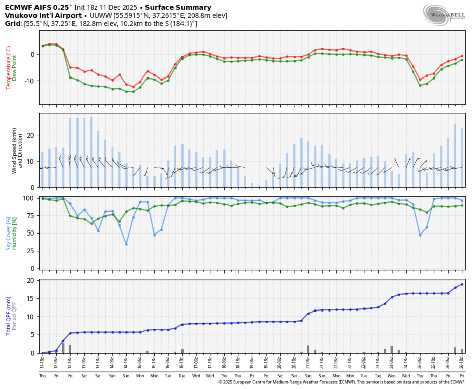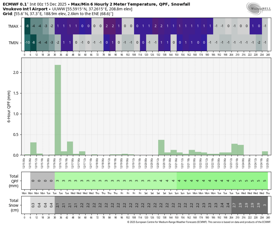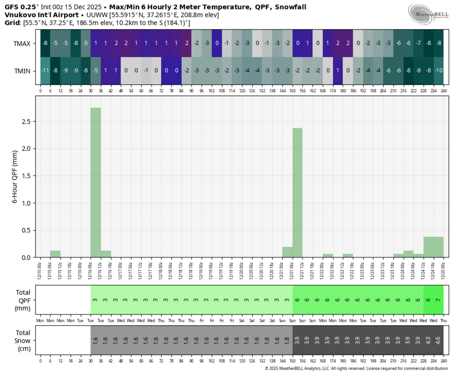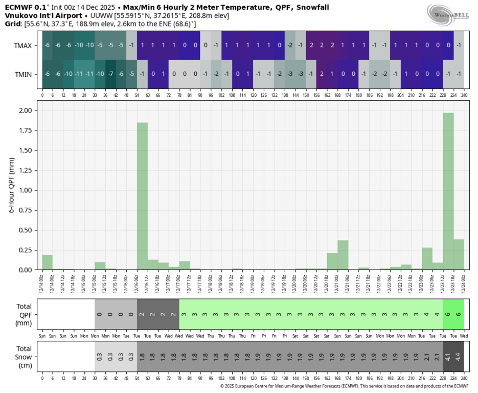 Теплый декабрь все таки для Москвы ожидается окончательно. Никаких морозов не видно.
