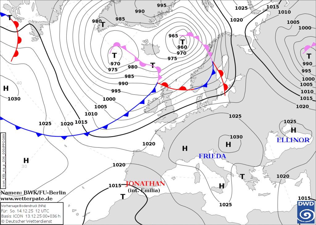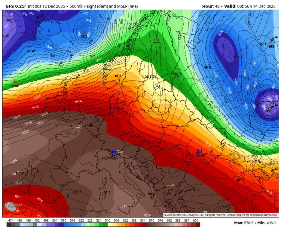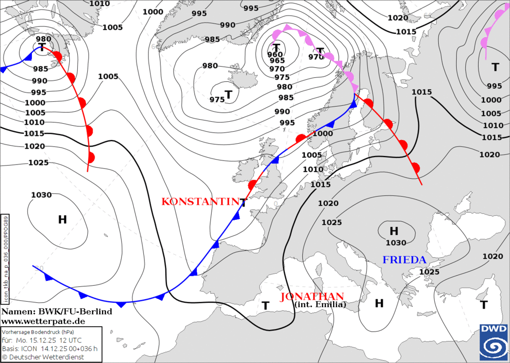 Гребень антициклона Фрида. На подходе циклон Константин.