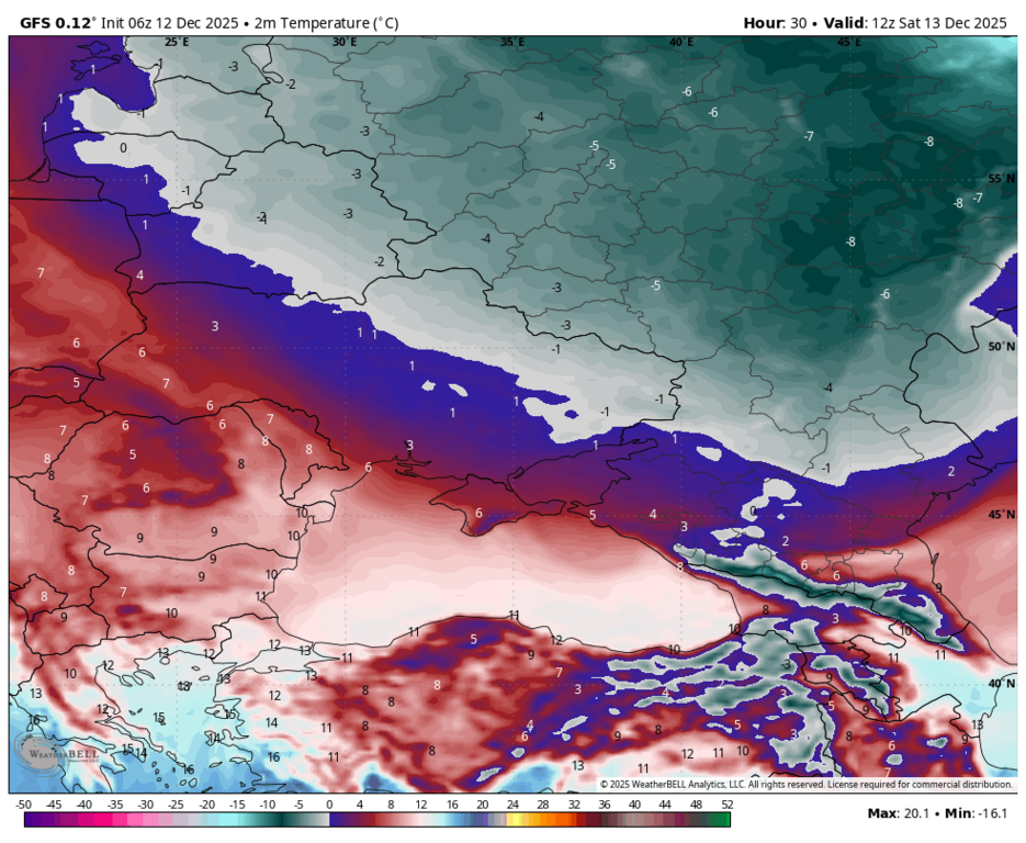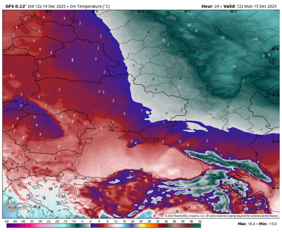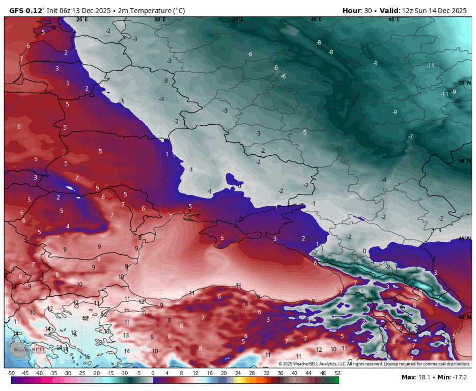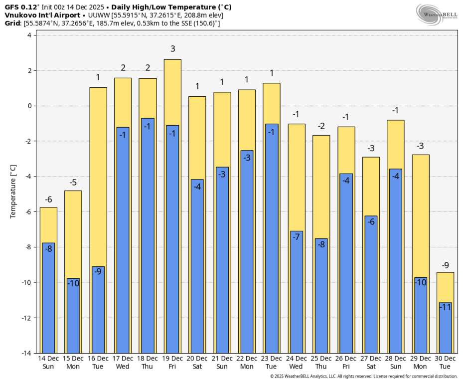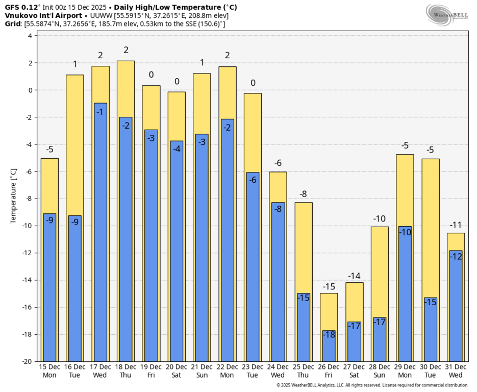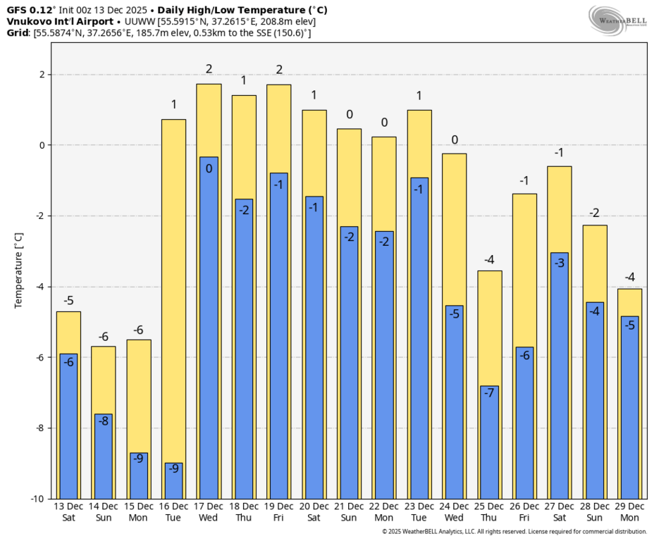 По текущей модели ГМ средняя декабря в Москве видится около 0°.