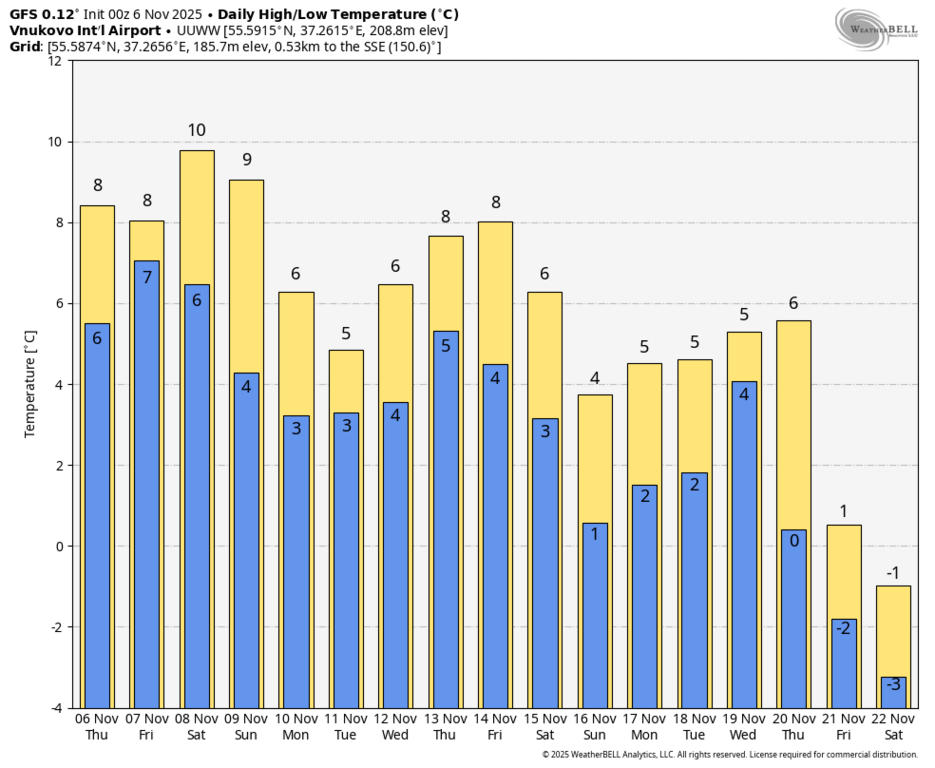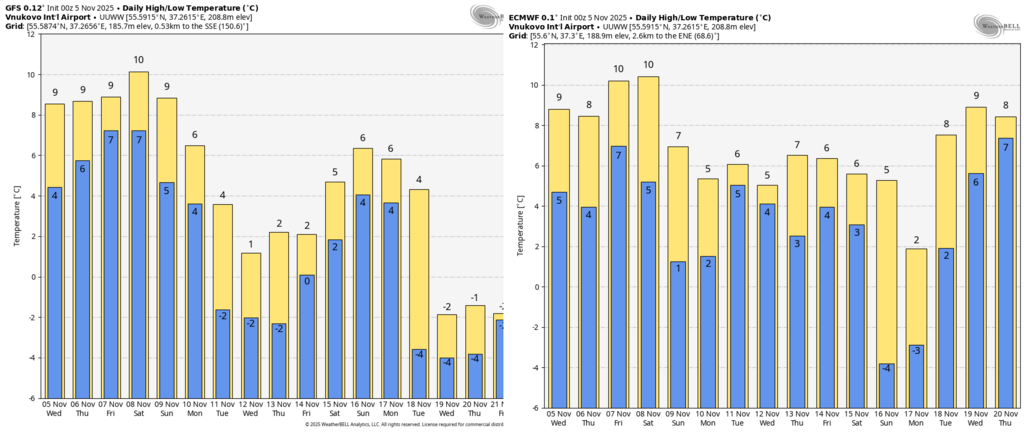Моделей цифровых предостаточно. Но ни одна их них не имеет преимущества. Каждый день их прогнозы как калейдоскоп. Любая дата, например 15.11, с интервалом 6-12 часов от холода к телу и обратно: