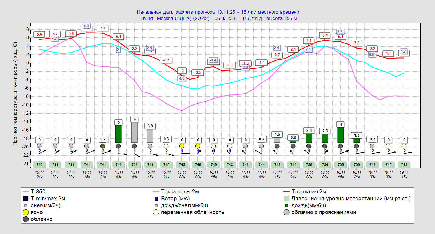 В прогнозе за 10 дней 60 мм осадков, из них 45 мм (75%) снегом.