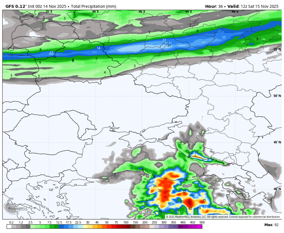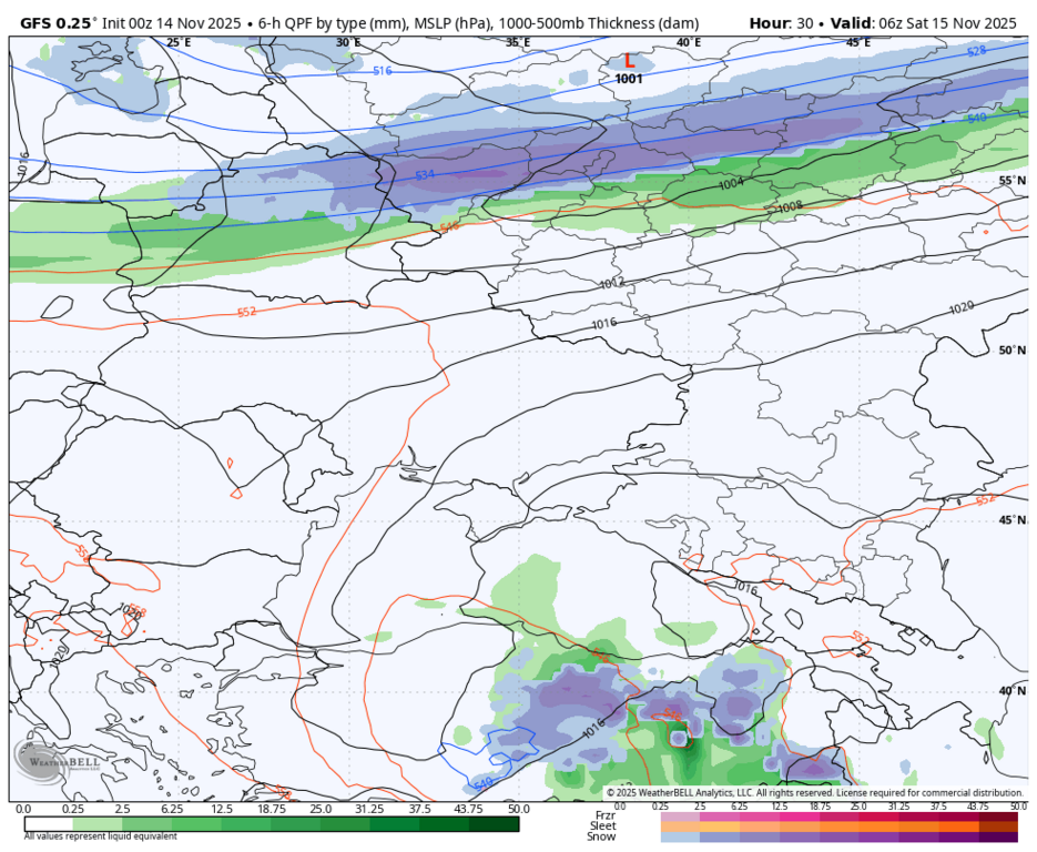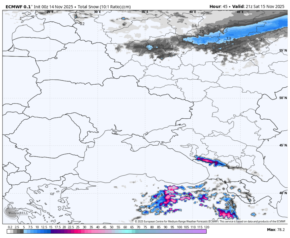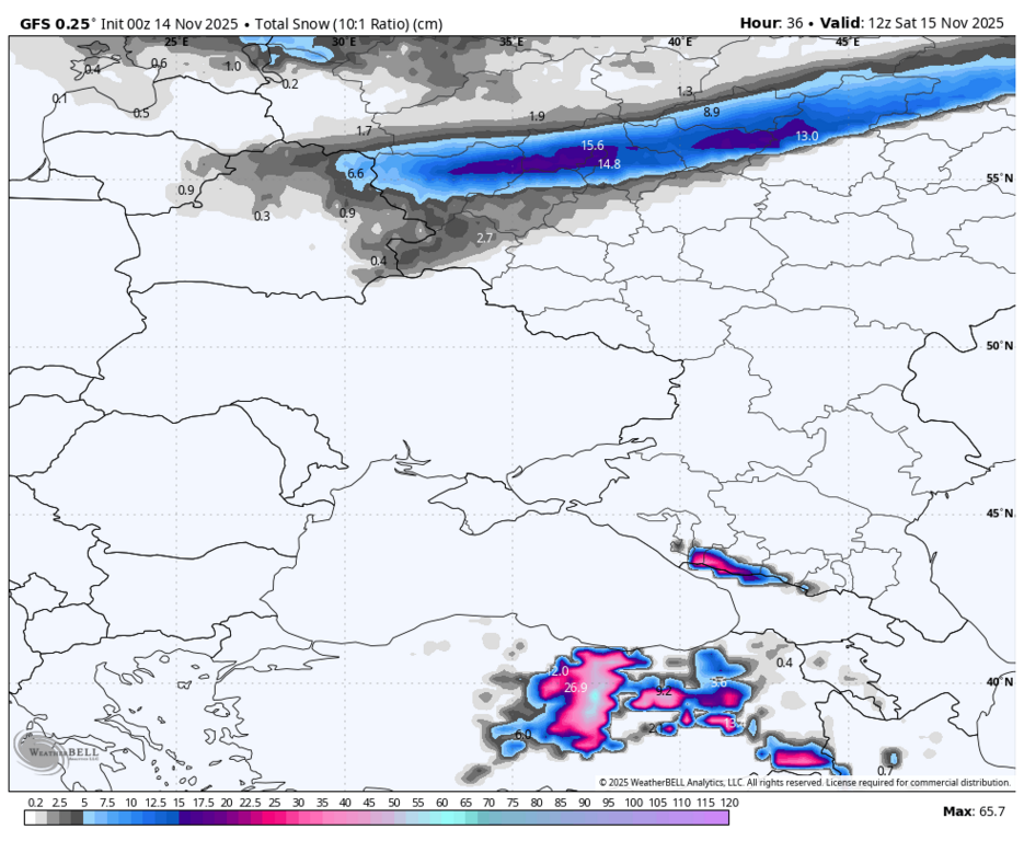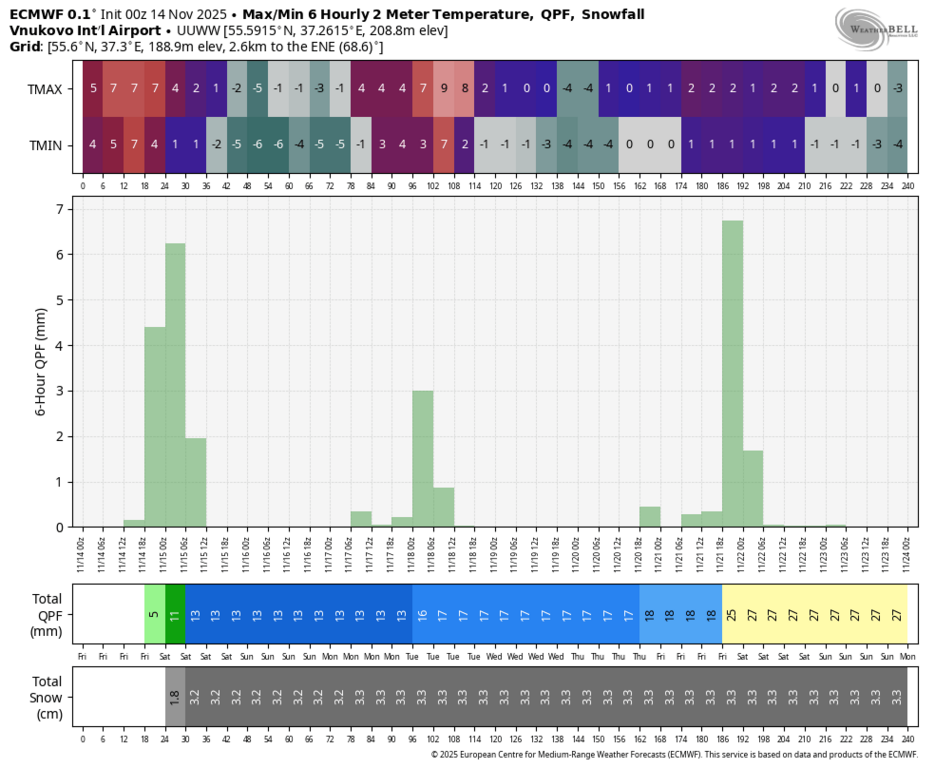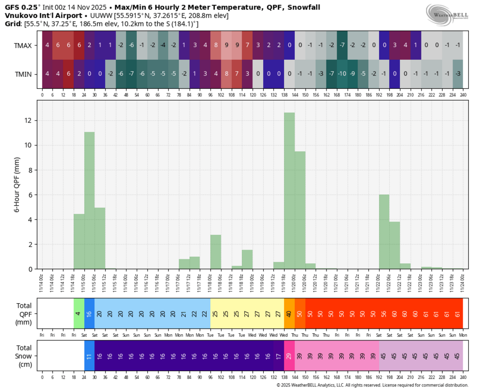 15 см снега, весь вопрос только в том, в котором часу он начнётся и ляжет на тёплую землю? Пока выглядит так, что тепло будет всю субботу, а снег может растаять.