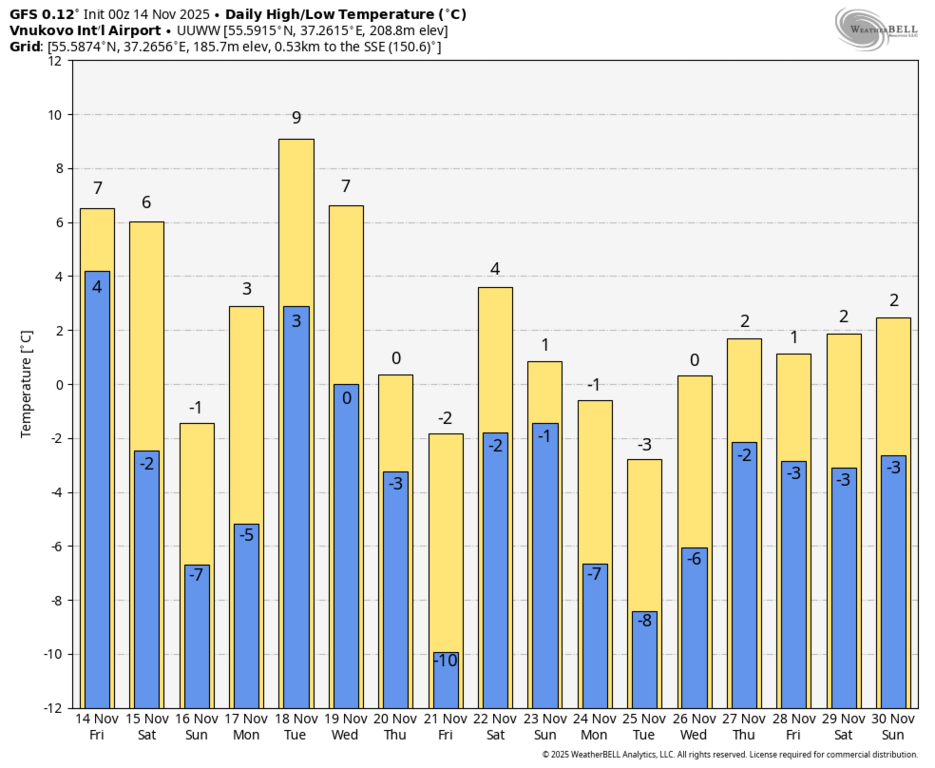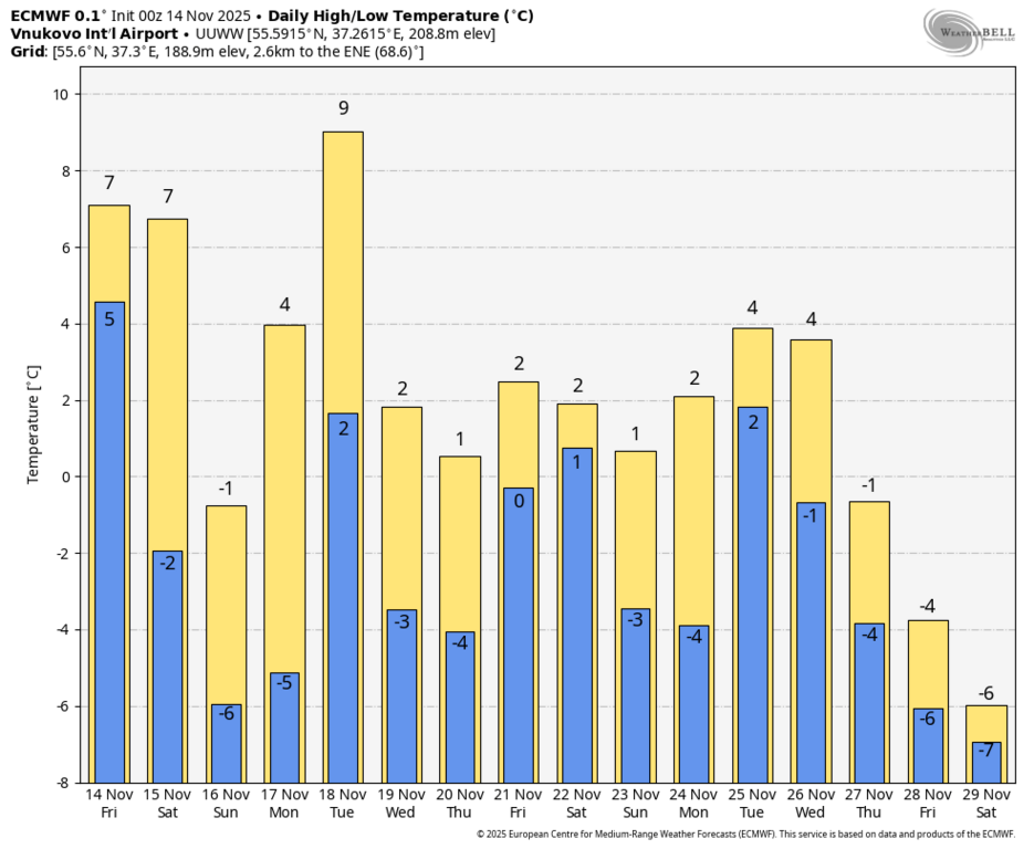 достаточно тепло для 3 декады ноября. Никакой настоящей зимы не видно в прогнозах..