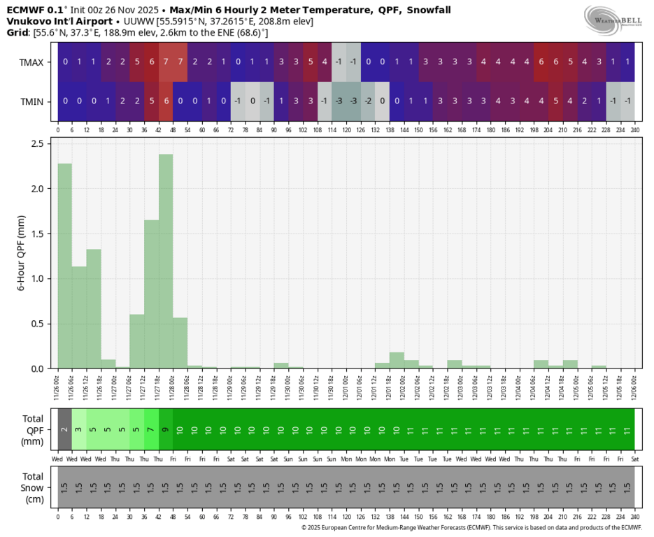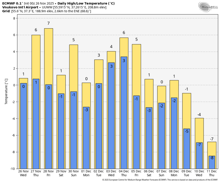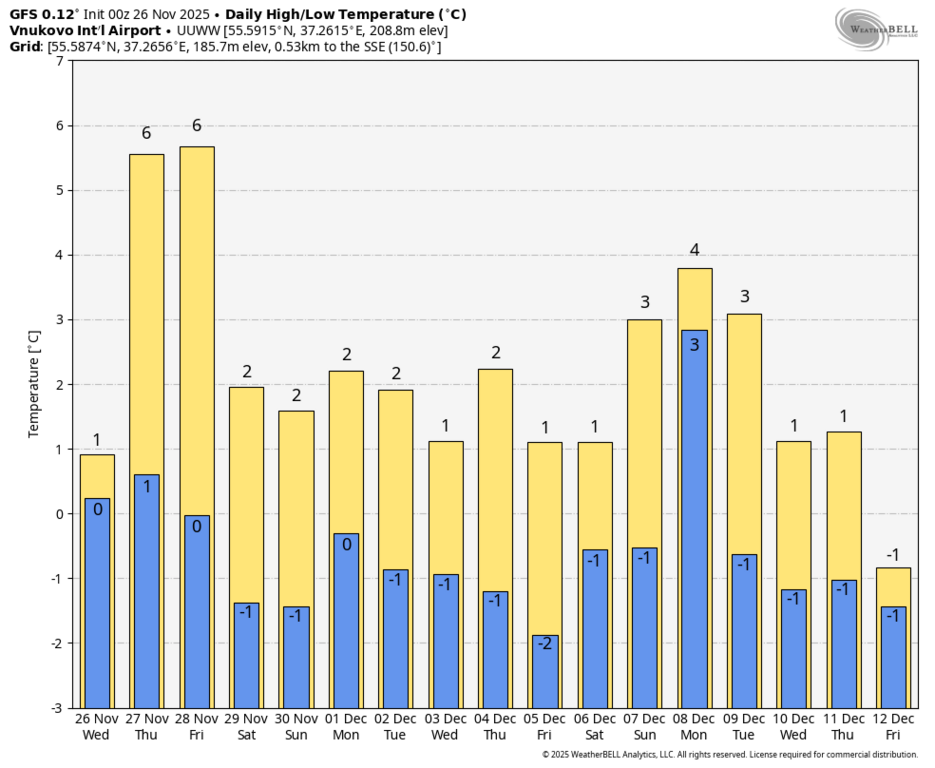 Так и не глянул барику во время мощнейшего мороза (для ноября) в Европе? Субтропический Азорец привёл к такому. Так что и на ЕТР достаточно хоть отрога тропического АЦ из Египта, но с ясными ночами! А нынче ясных ночей просто не бывает в ЕТР.