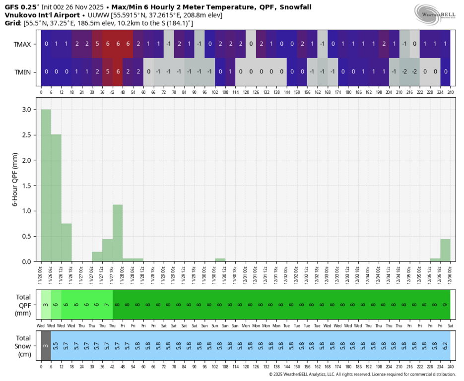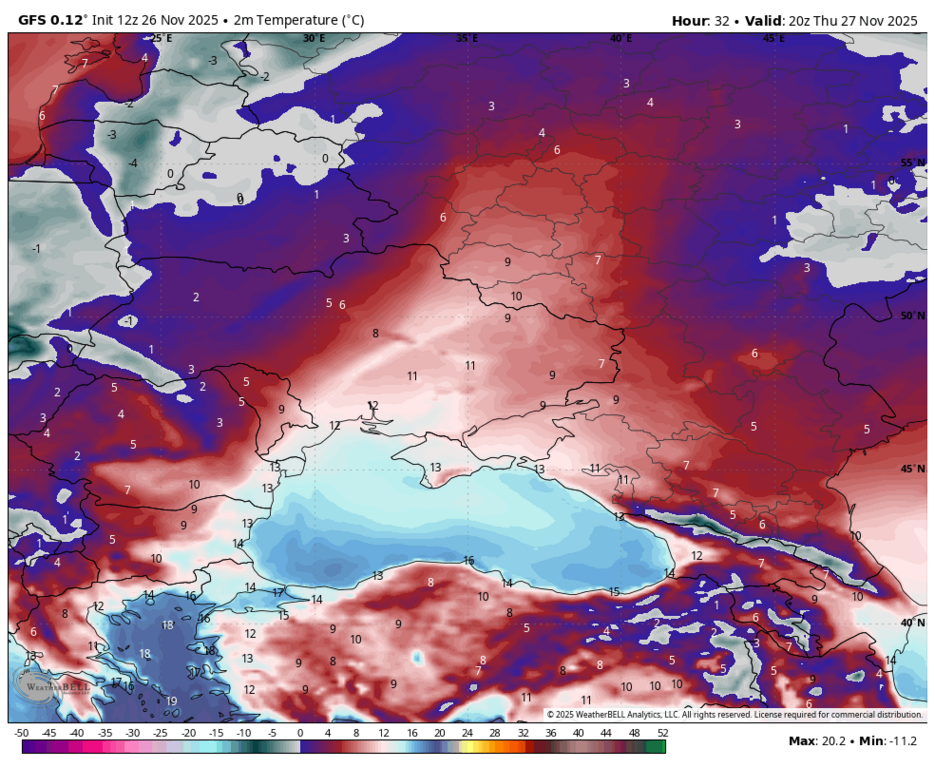 Прогноз Т2м примерно на стык метео-суток 27 и 28 ноября
