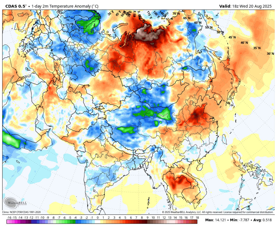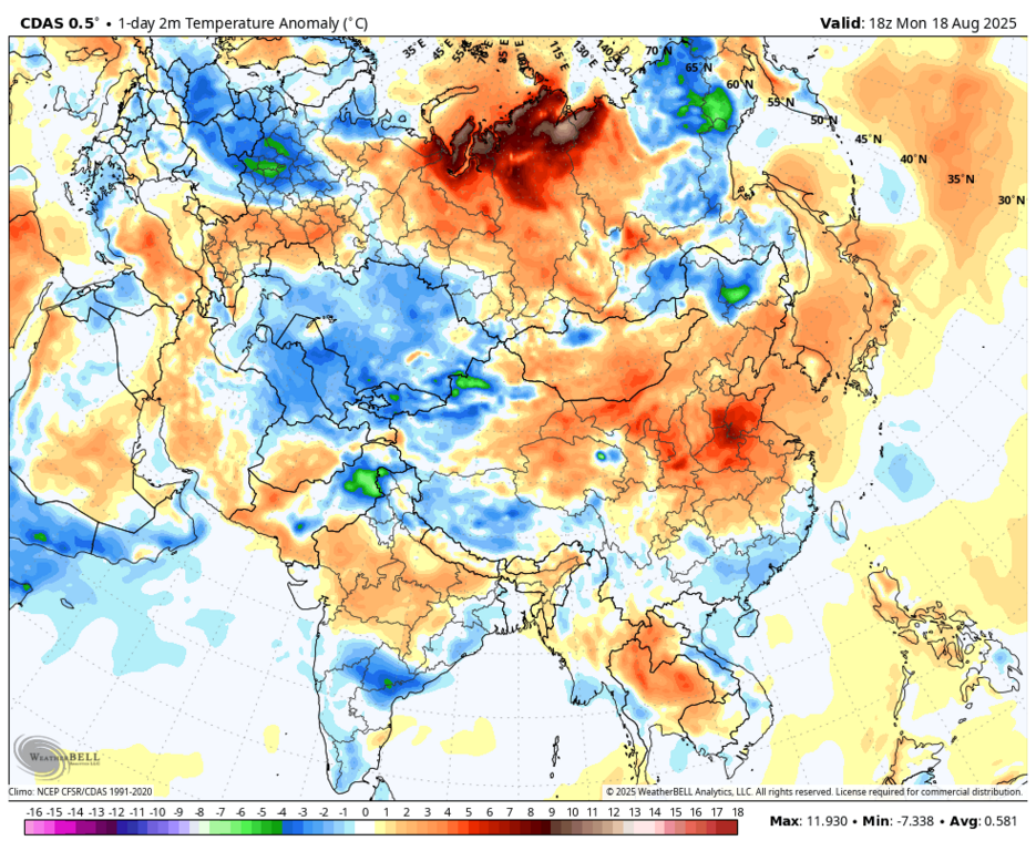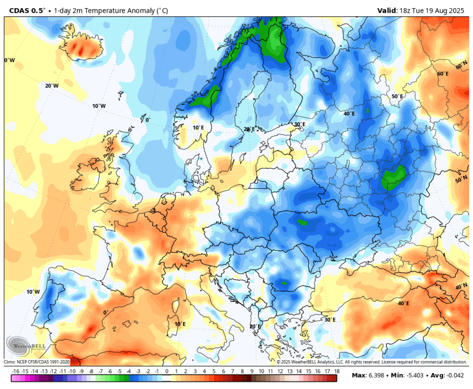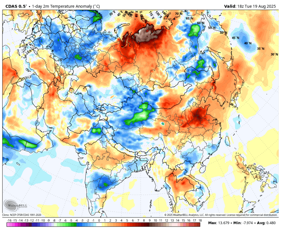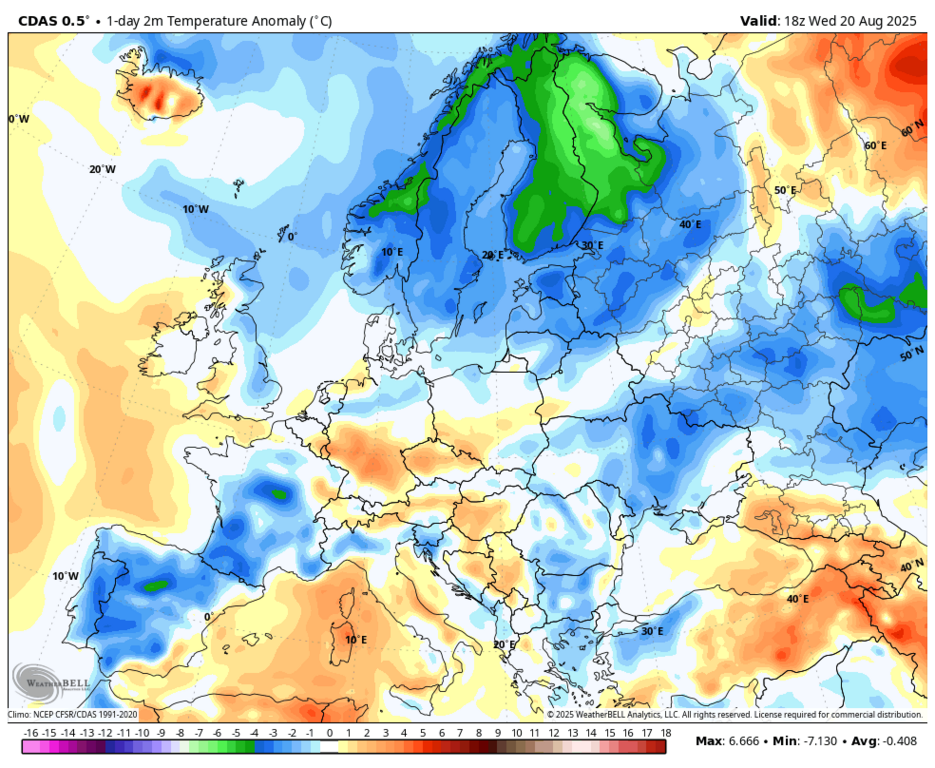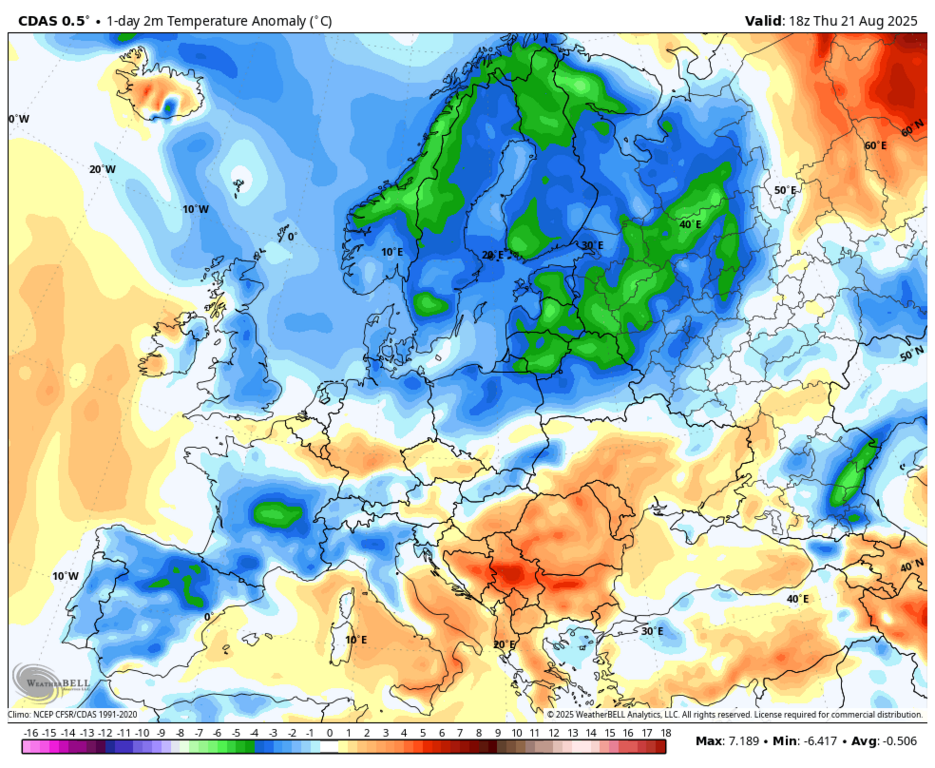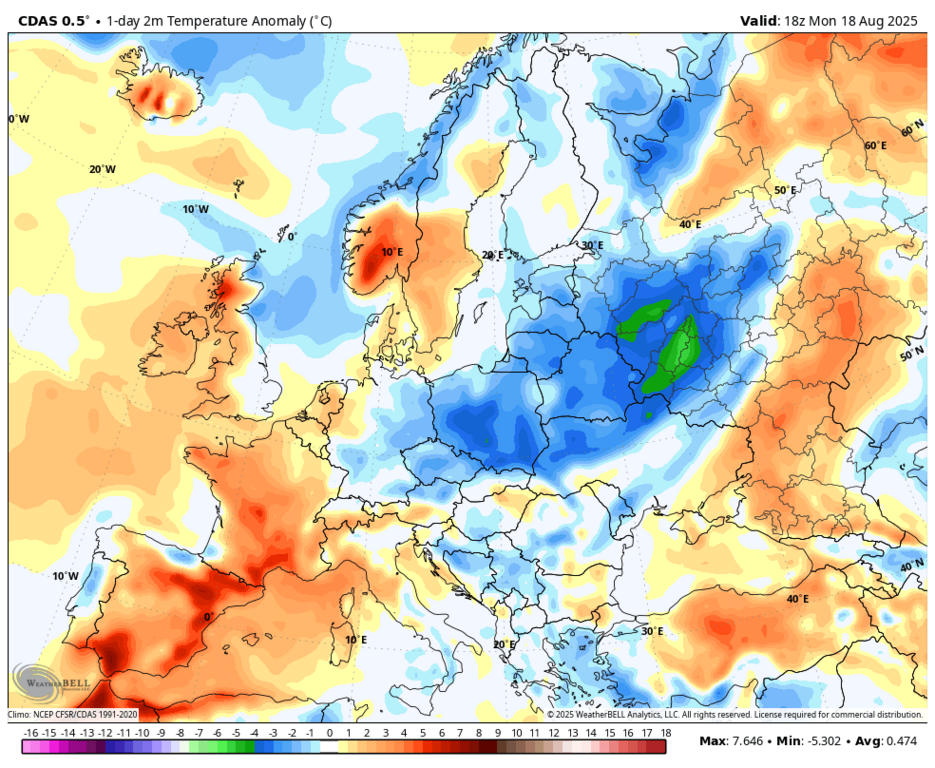 Брехня, а не карта. У меня самая высокая норма августа, а самые холодные сутки, но на карте и близко ничего подобного. Среднесуточная вчера у меня была всего +11.1!!! Это норма начала октября!