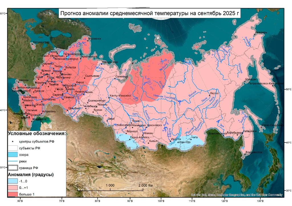 Прогноз Гидрометцентра на сентябрь 2025