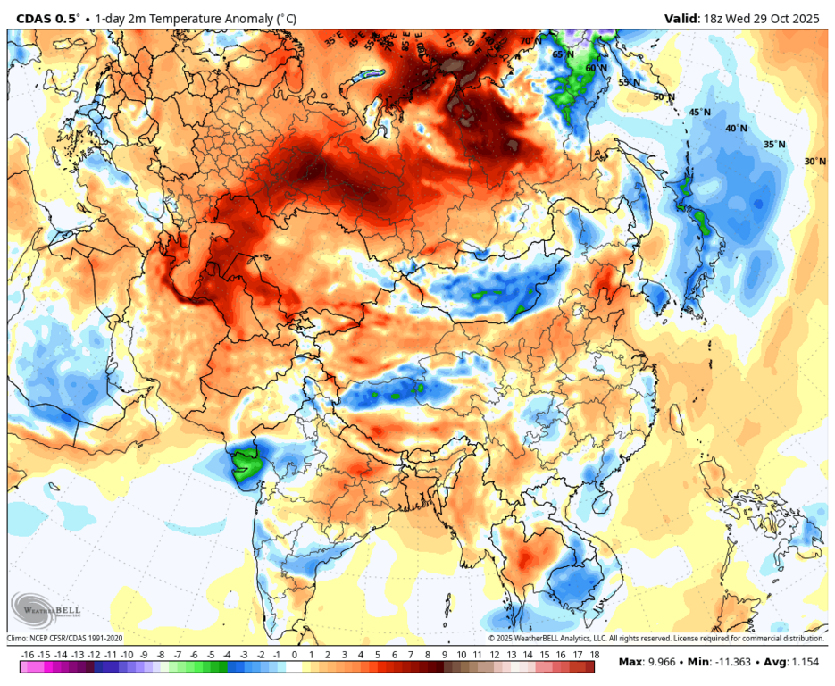 Причём в начале месяца там был побит абс. максимум октября. А сейчас глубокая зима. Вот это я понимаю, резко-континентальный климат!