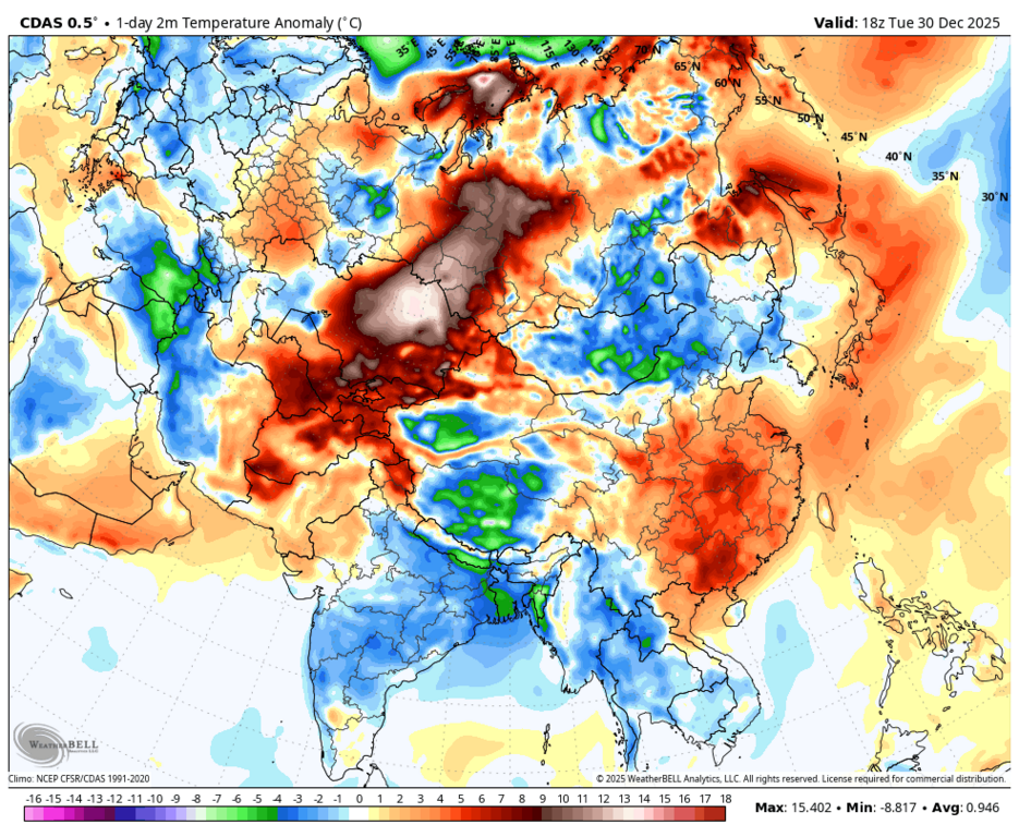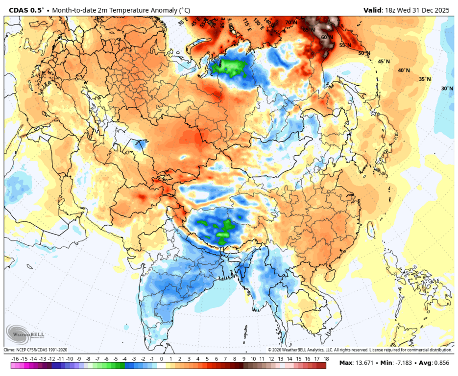 В Байконуре Тан декабря +2.4, осадков выпало около нормы (это большой прогресс после теплой и очень сухой осени, когда осадков почти не было).
