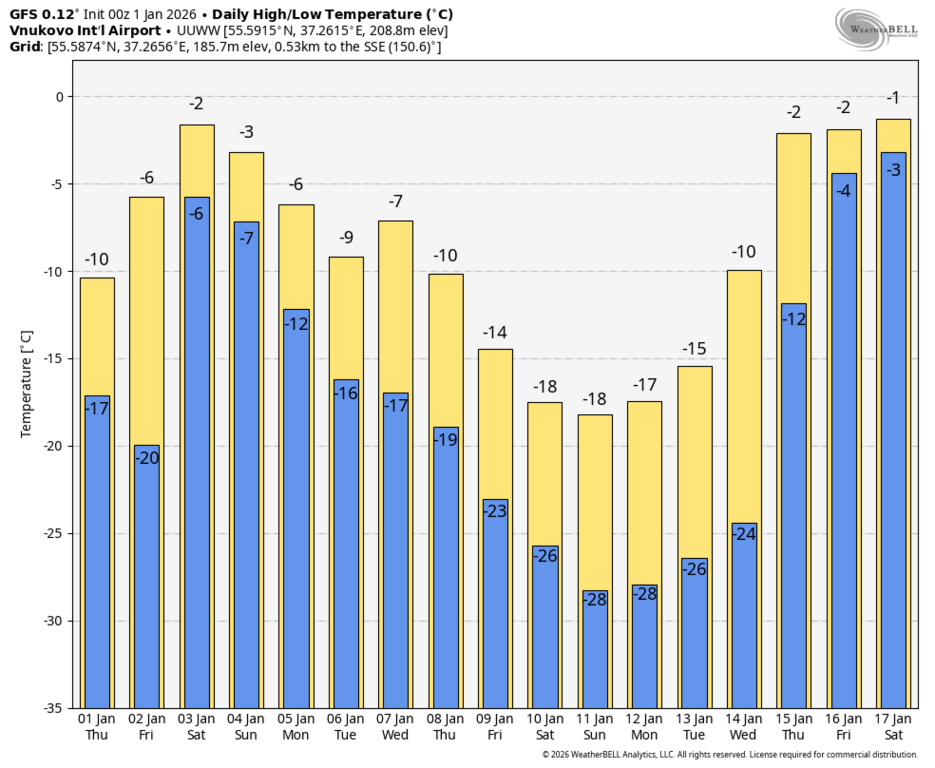 Хвосты, как обычно, мотает. Но ближайшее потепление 3-го января уже никуда не денется.