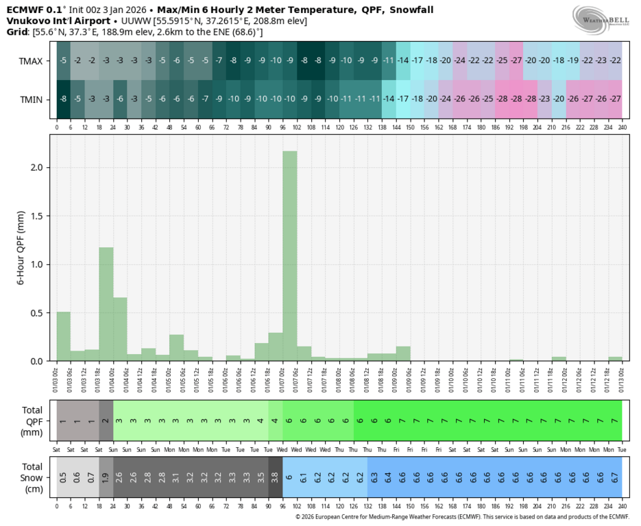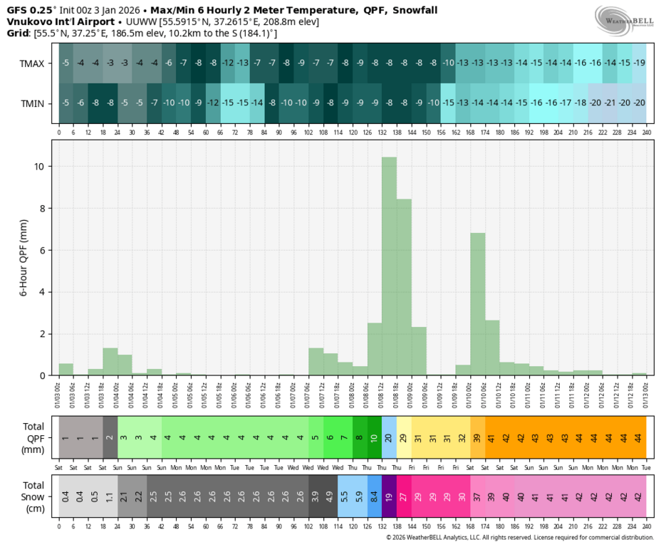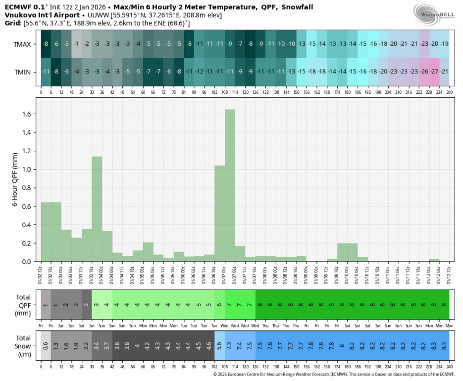 Батл - ЖФС против ЕЦСПП - прогноз осадков в виде снега по МО за 3 дня с 8 по 10 января включительно