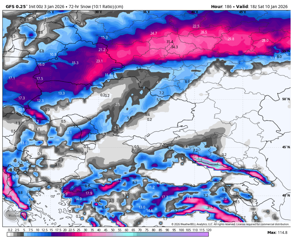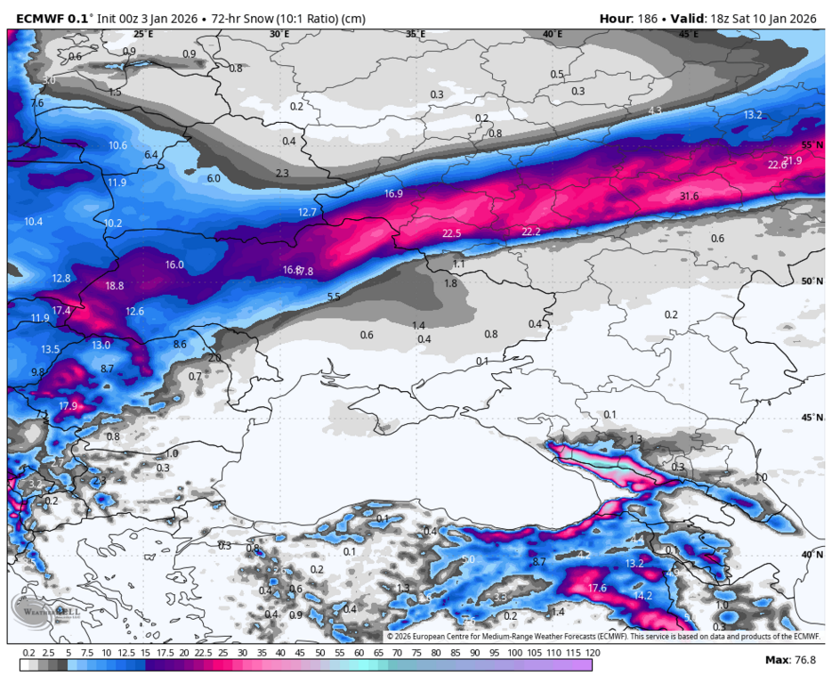 Достаточно интересный южак у моделей на 8 января. Есть шанс неплохих снегопадов. Правда и в ТС можем попасть...