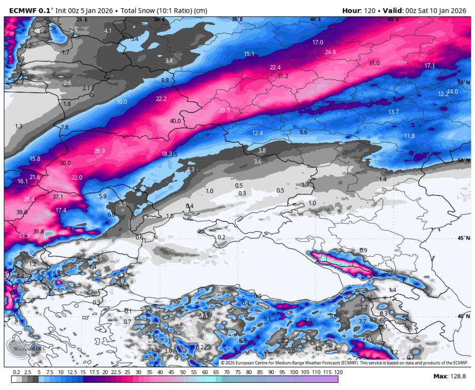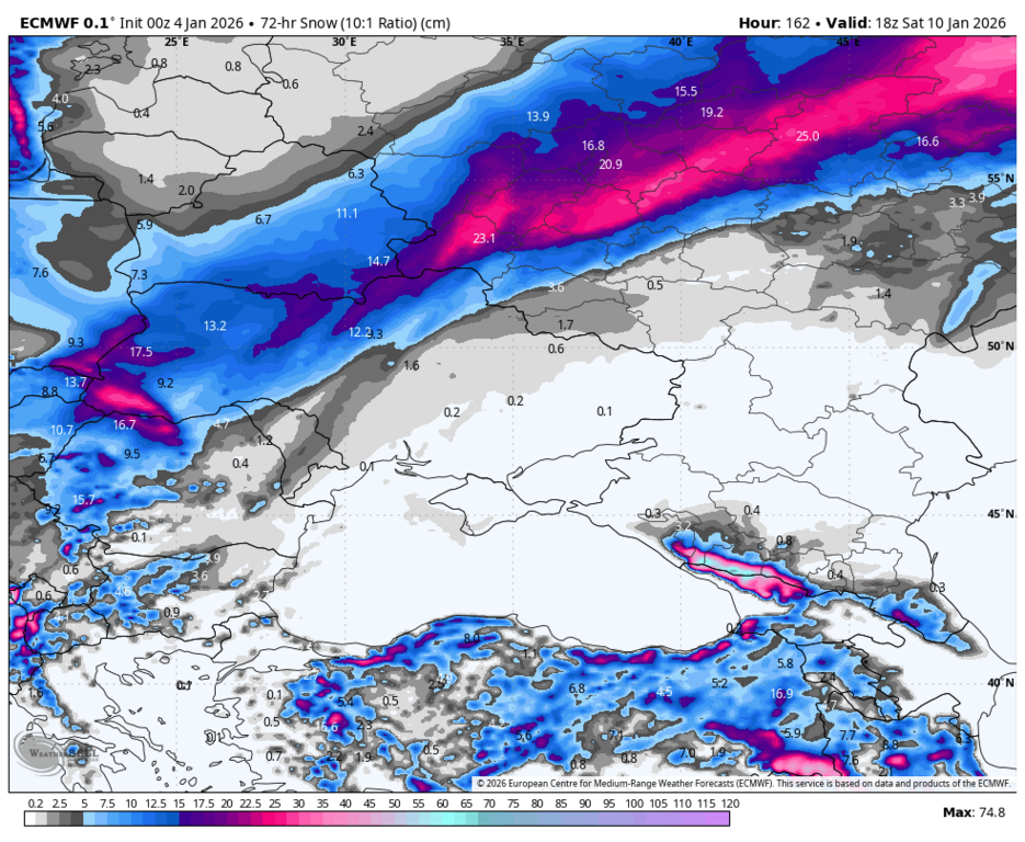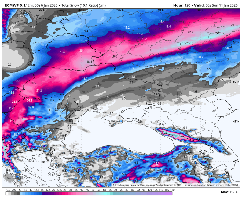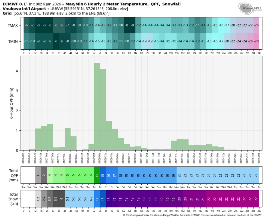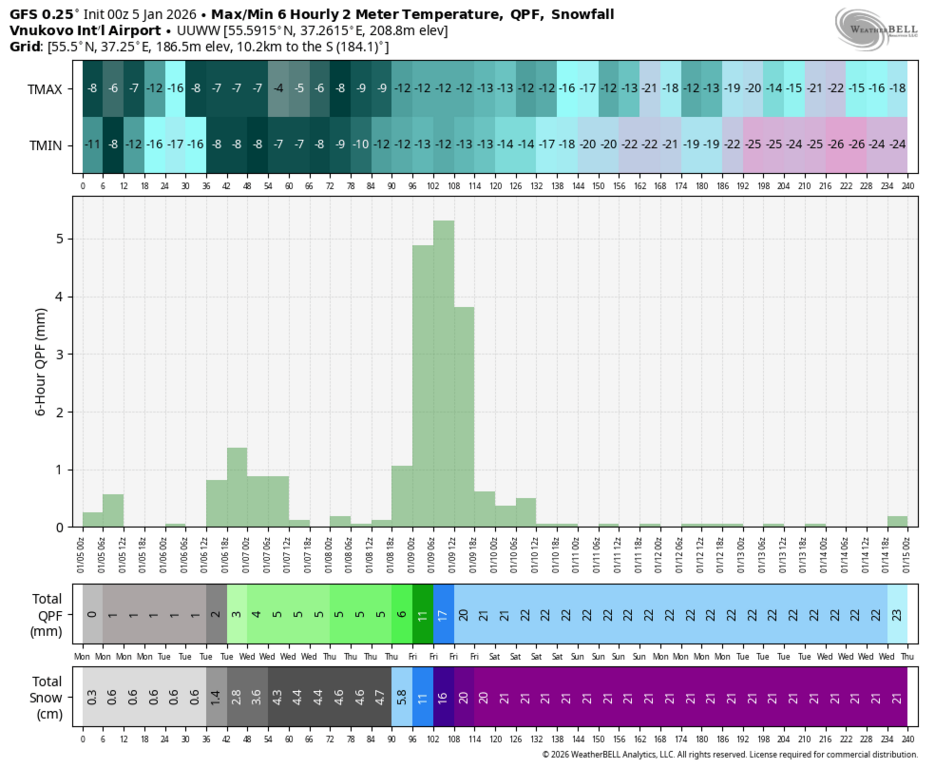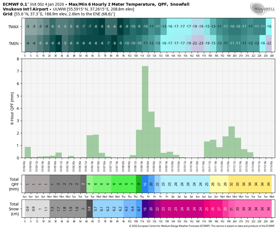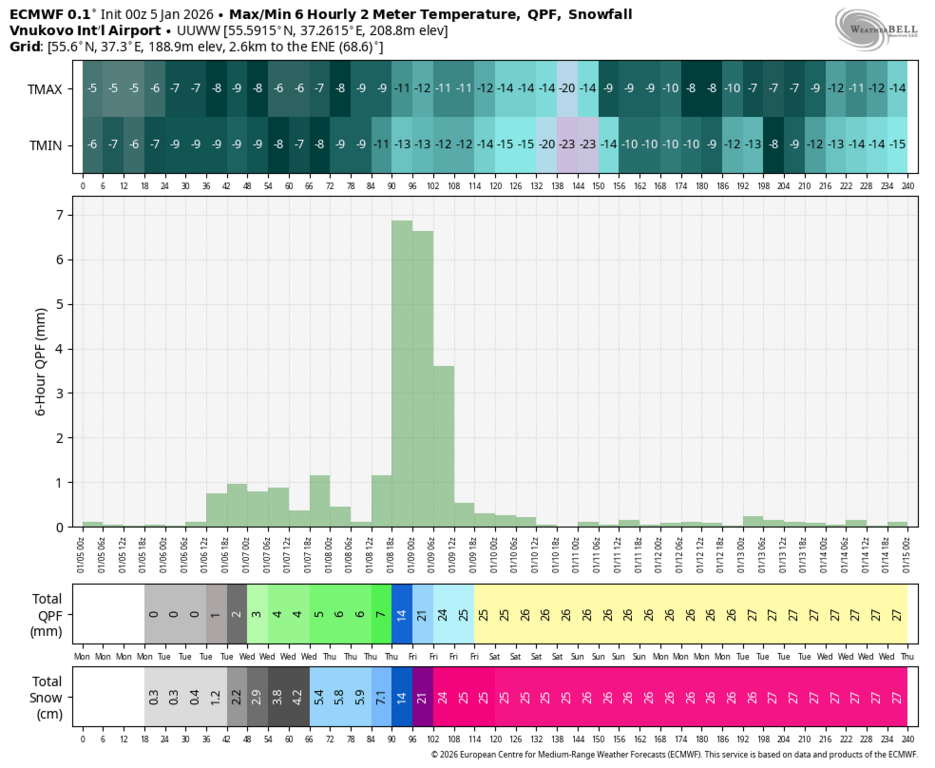 ЖФС и ЕЦСПП - прогноз осадков в виде снега до 10 января