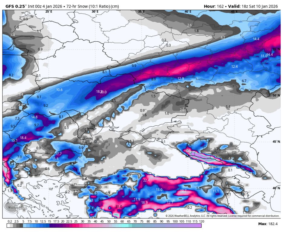 ЖФС против ЕЦСПП - Прогноз осадков в виде снега по МО за 3 дня 8,9 и 10 января