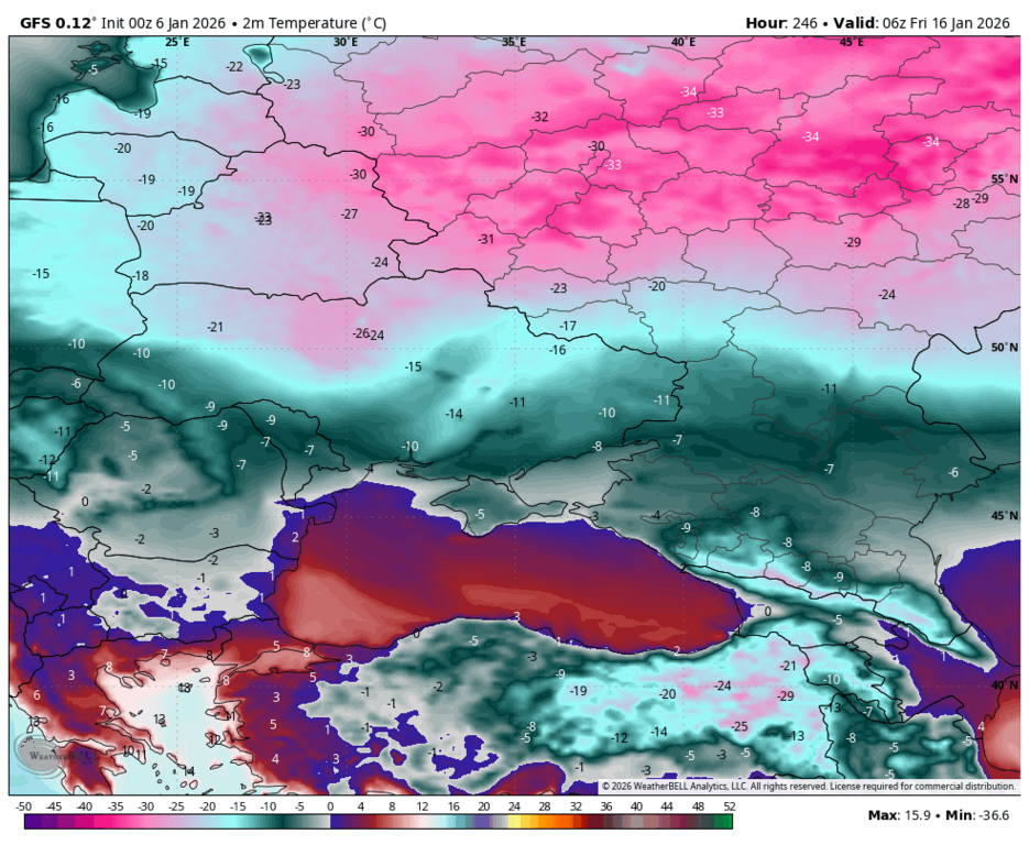ЖФС и ЕЦСПП - прогноз Т2м утром 16 января - практически консенсус