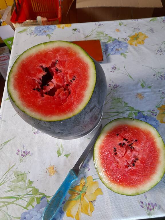 Очень сладкий, прямо цимус. Общий сбор арбузов на 16 августа 59,9 кг.