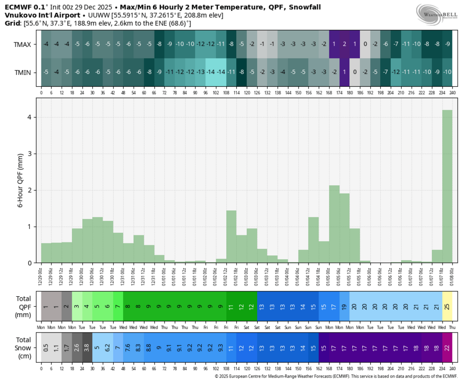 Как известно, 22-24 декабря обвал холода на ЕТР (через Центр) с северо- востока. ААЦ с Тмин -15,-24*. Повторение нового подобного процесса через 19-20 суток. Это с 10-13 января 2026. У моделей и самых пронырливых ни слухом , ни духом... Куда