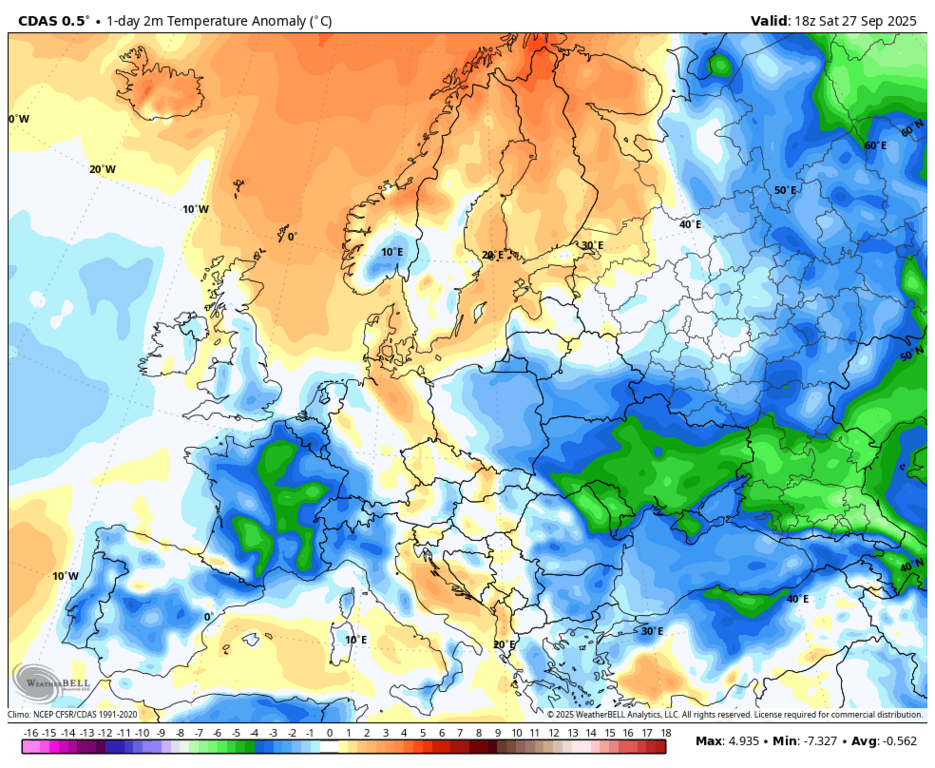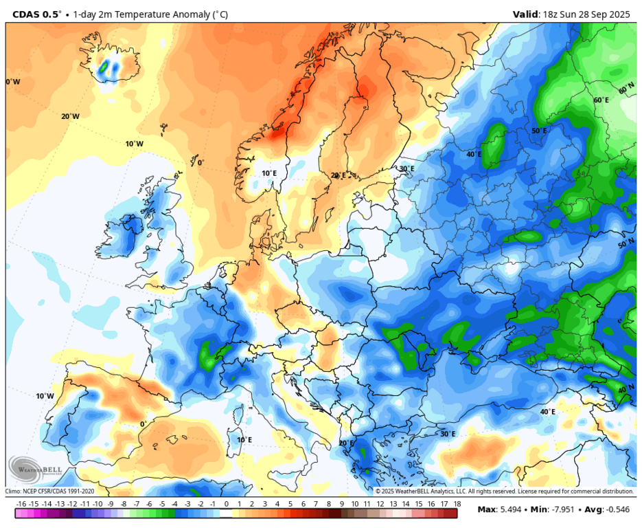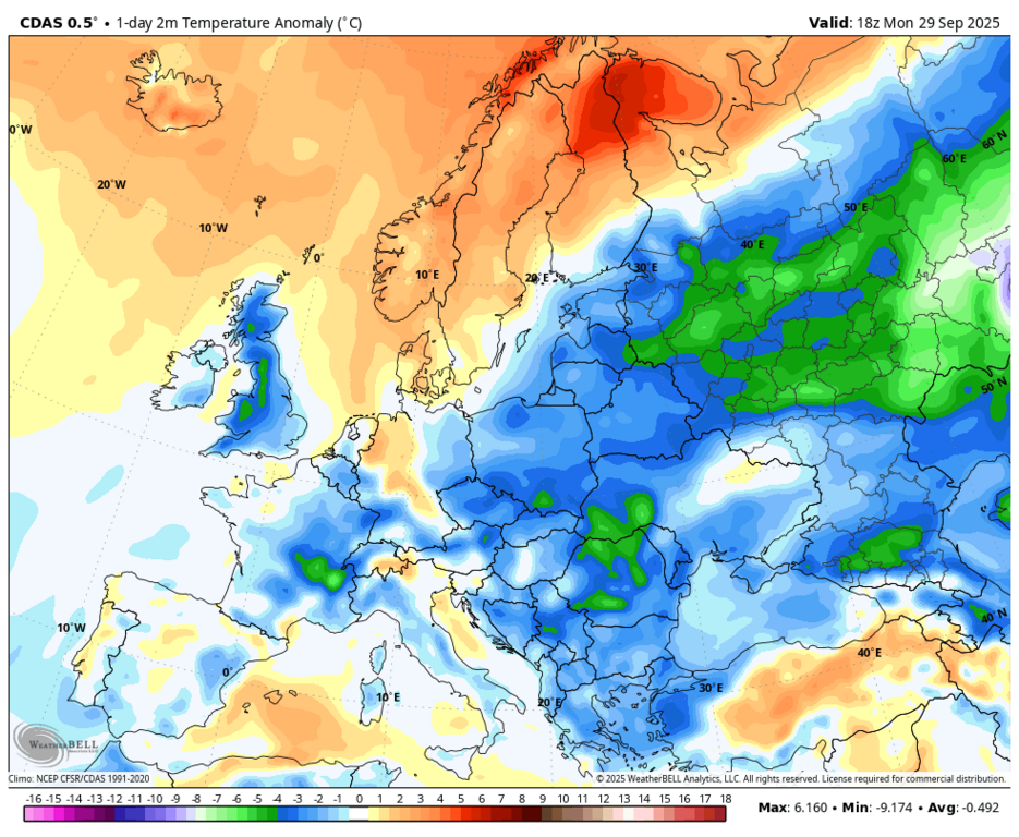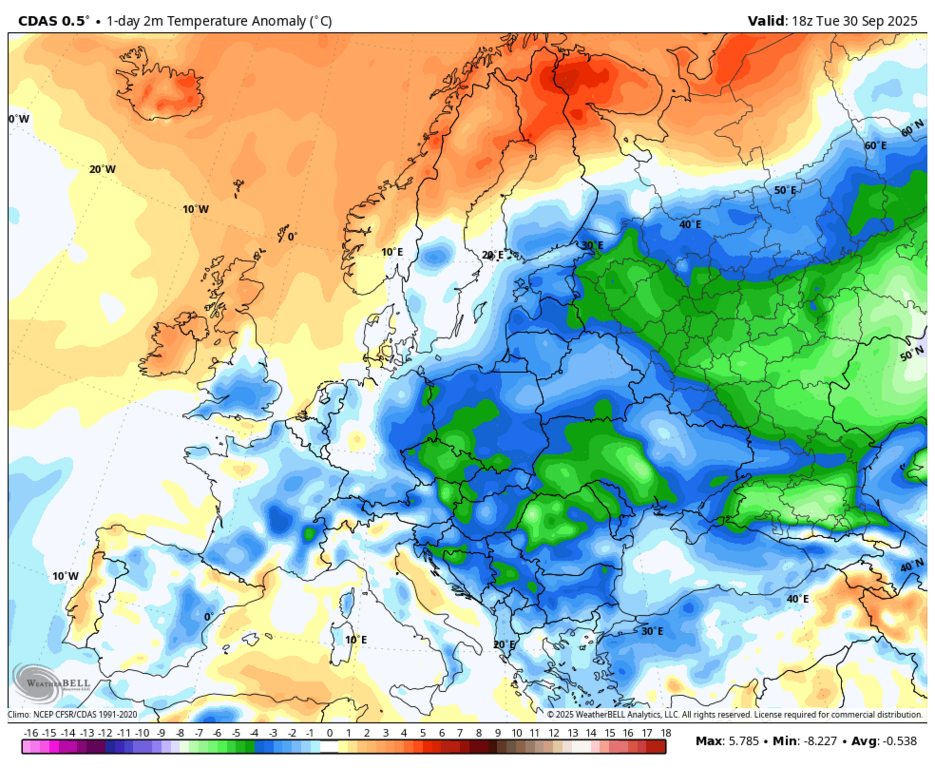 Sahara 2025-10-02 04:13:23 | Эта карта аномалий куда информативнее, хотя и к старой норме. Ибо разница Тан между западом и востоком Латвии не меньше 1 градуса!!!