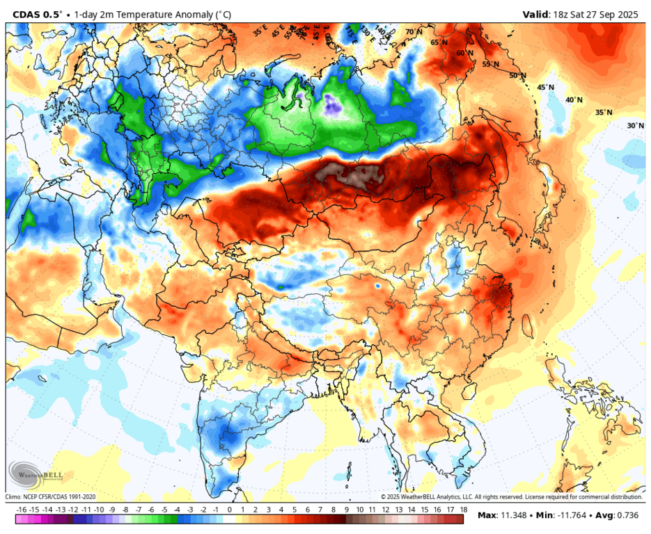 1) 2024 (+17.1) 2) 2023 (+15.0) 3) 2018 (+14.6) 4) 1955, 2020 (+13.9) 5) 2015, 2009, 2025 (+13.8) Причём почти все (кроме 1955) - это буквально недавние сентябри из 21 века. |