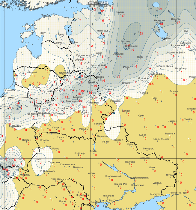 Клин 20 см, ВДНХ 13 см, Н-Ф 12 см, Истра 11 см, Павловский Посад 8 см, Кашира 7 см. |