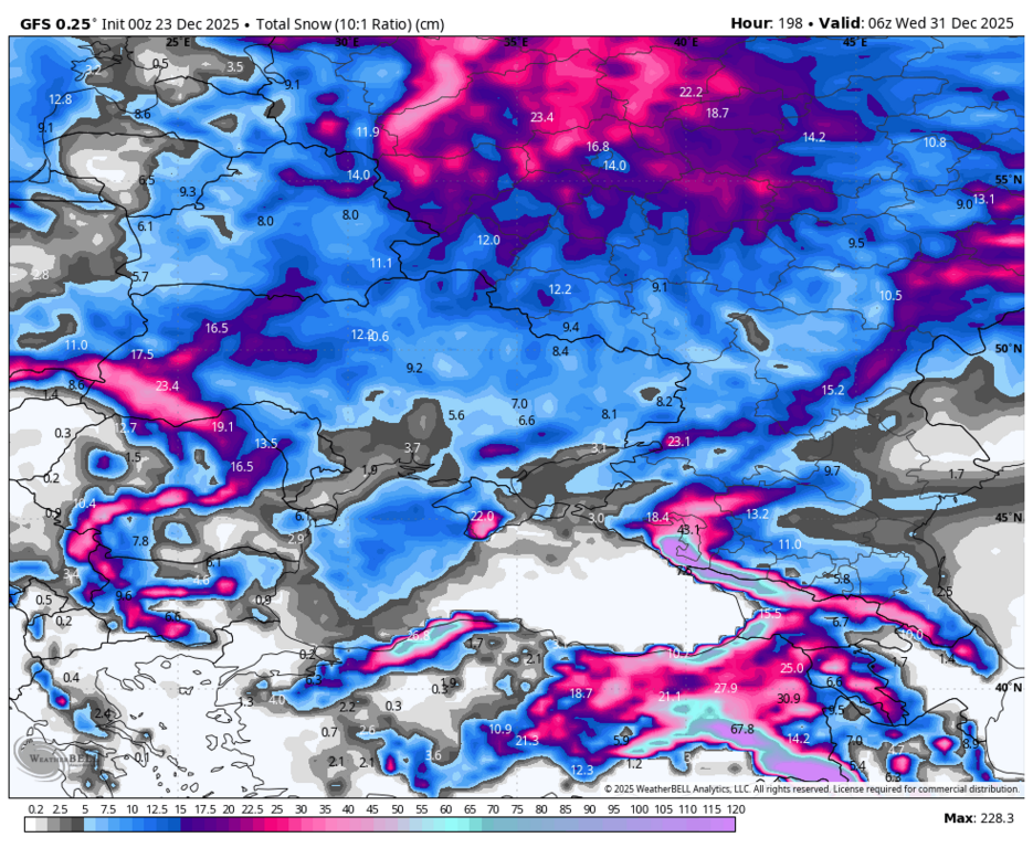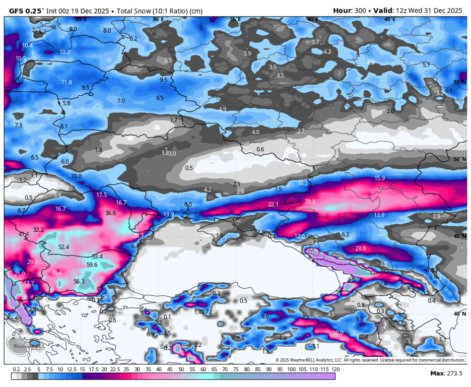 | ded 2025-12-23 04:31:12 | ЖФС - прогноз осадков в виде снега до 31 декабря от трех падающих циклонов