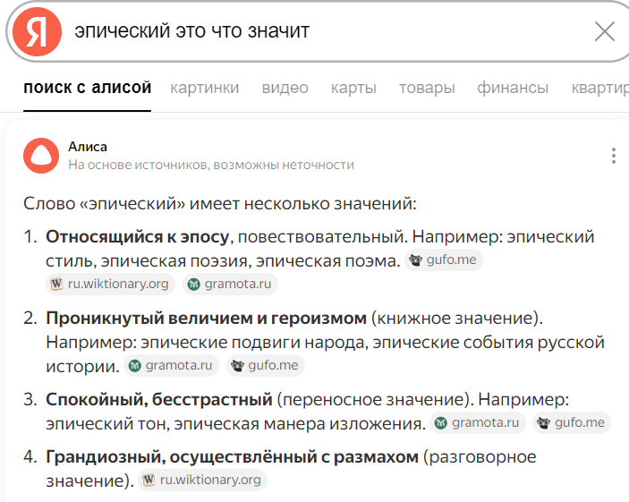 Некто рукс не только полный ноль в метеорологии , но даже читать не умеет 30 Сен 2025 15:36 - Поправил: Spasatel Цитата Завтра последний солнечный день. Дальше преобладание облачной погоды по GFS и син прогнозу. . Абсолютно чётко написано, что это прогноз GFS и синоптиков, а не мой. По факту http://www.pogodaiklimat.ru/weather.php?id=27612 днём облачность 8-9 баллов. Что касается эпичный и эпический, то Sahara прав Эпично - сленг - исключительный, поразительный, необыкновенный; фантастический, легендарный эпический - ( epos — повествование) — величаво-спокойное изложение в художественных произведениях ... . Как верно написал Sahara, в родном языке я реально чувствую, что - правильно, а что - не совсем. . |