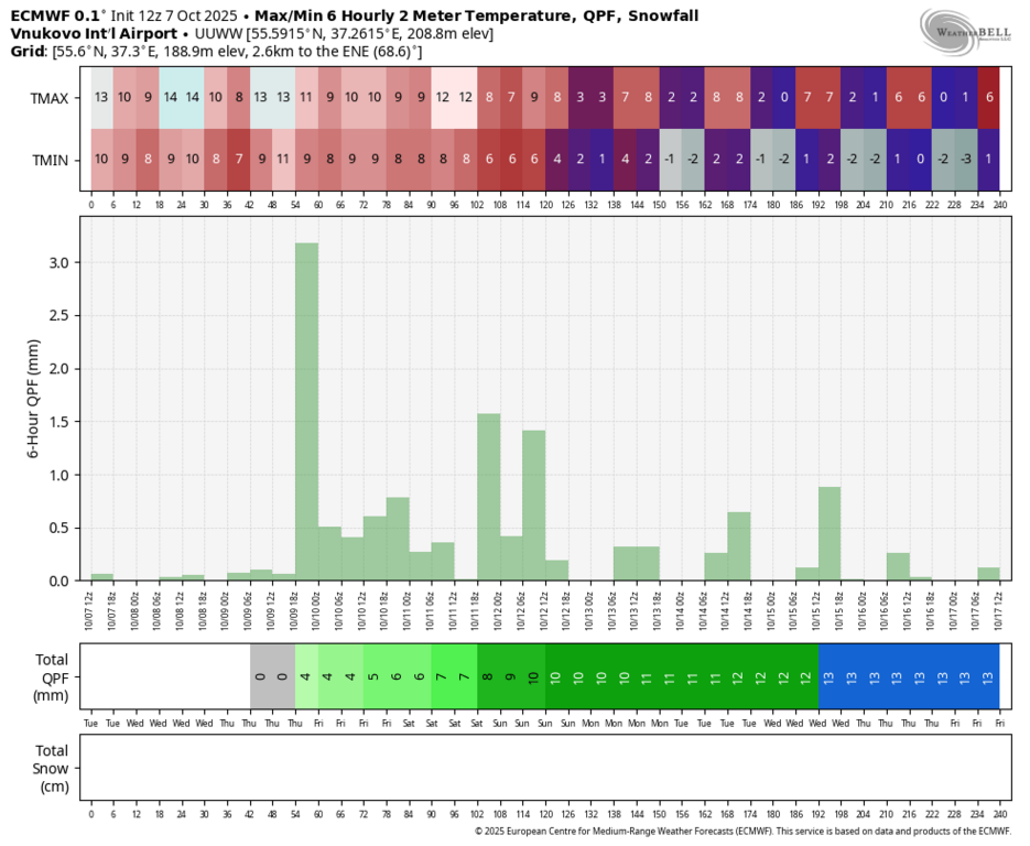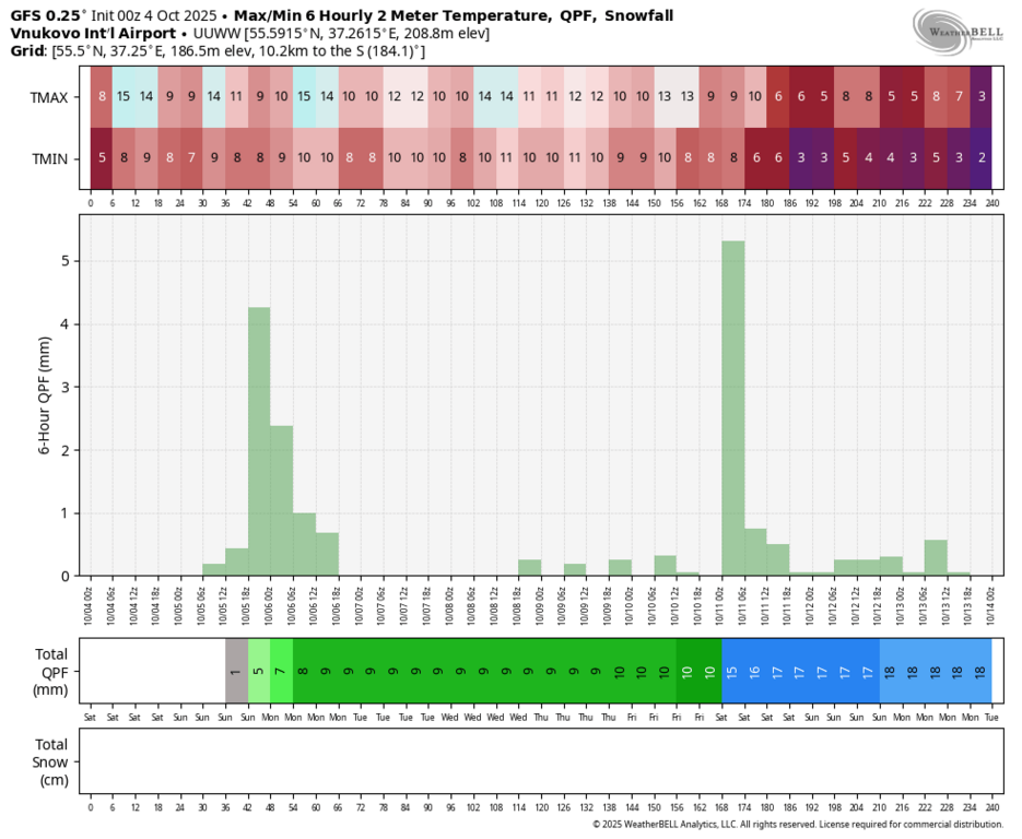 ded 2025-10-04 07:28:52 | ЕЦСПП и ЖФС - Внуково, прогноз температуры и осадки