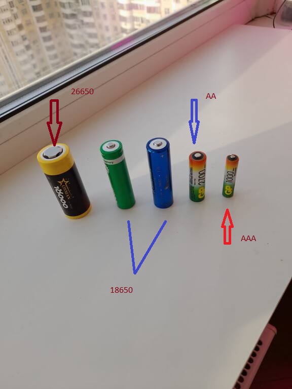 Справа никелевые ААА (мизинчиковые) и АА (пальчиковые).