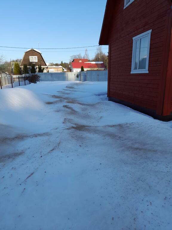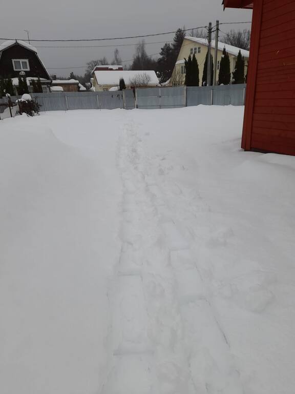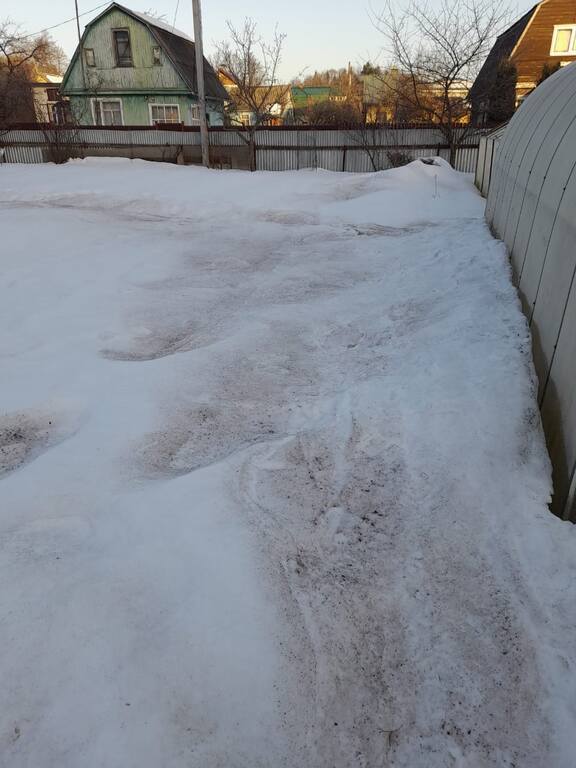 В 2013-м я практически полностью освободил проходы к дому и теплицам с помощью обычной лопаты за несколько часов пока дом протапливался. Хотя там много льда было. Без него ещё быстрее было бы. А так немного льда всё же местами осталось |