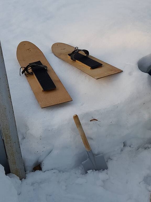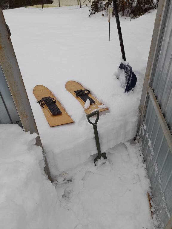 ded 2026-02-16 02:16:56 | В субботу ездил на дачу. Дорогу трактор почистил, открываю калитку, а там 60 см (в местами и больше) лежалого, мокрого, тяжелого снега, который липнет на лопату, а до дома идти 50 метров. Хорошо, что в свое время приобрел вот такой гаджет, называется лыжи охотничьи