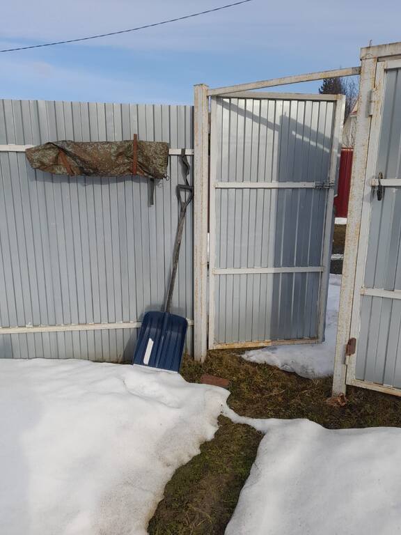 Большая лопата (которая на фотке) и лыжи живут постоянно на участке, я их с собой никуда не вожу. Они на кронштейне висят на заборе рядом калиткой. но с внутренней стороны, так что с улицы их не видно. Приехал, открыл калитку, снял лыжи с кронштейна и всех делов.