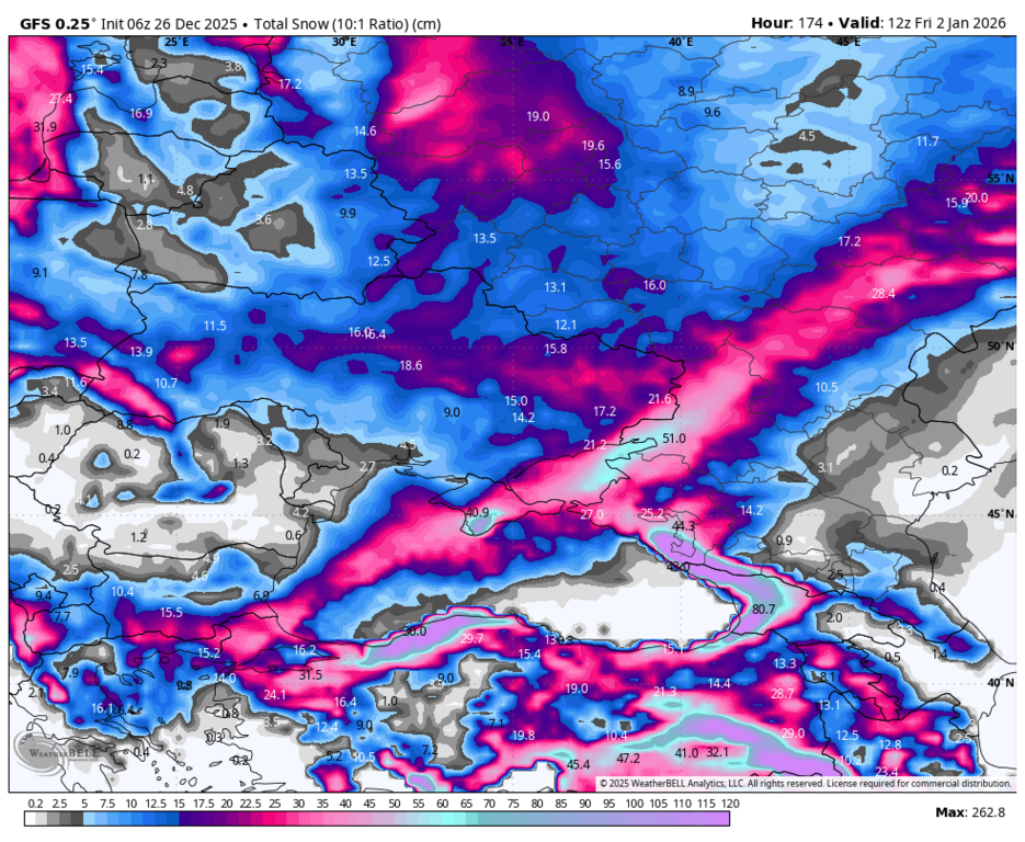 Aleks UK 2025-12-13 12:48:43 | В Сочи на Красной Поляне, высота 500м выпал снег, в Крыму на Ай-Петри высота 1200 м -м/с отметила - 2см СП, на Ангарском перевале -600 м - СП отсутствует |