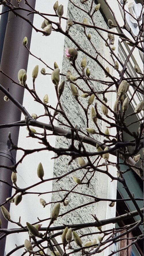 Магнолия Суланжа, только начинают раскрываться отдельные бутоны, в Севастополе также