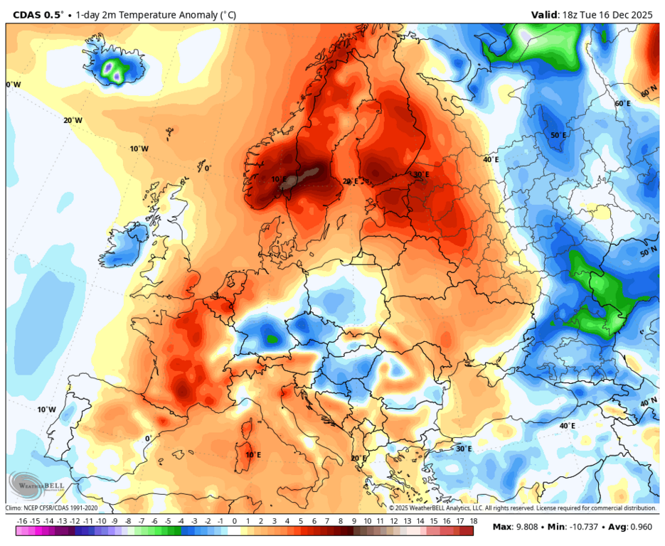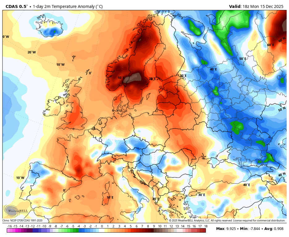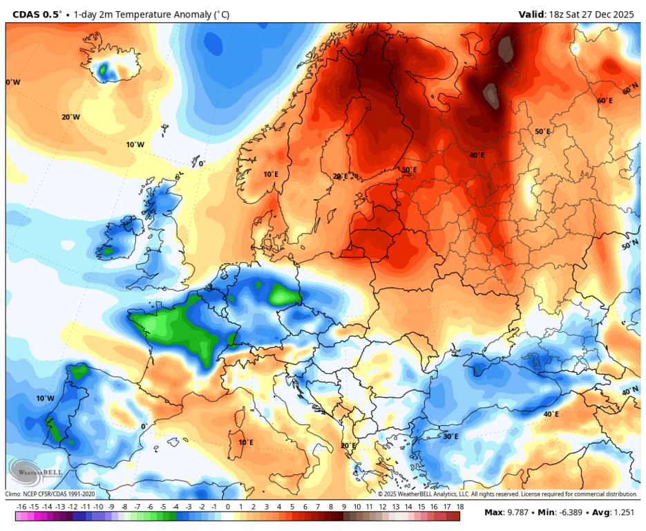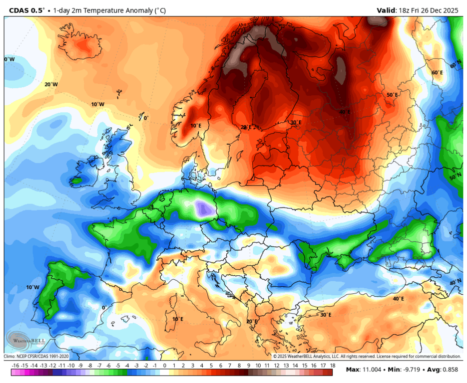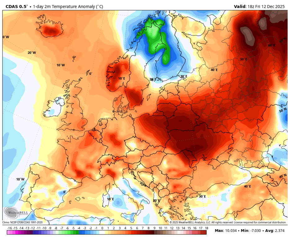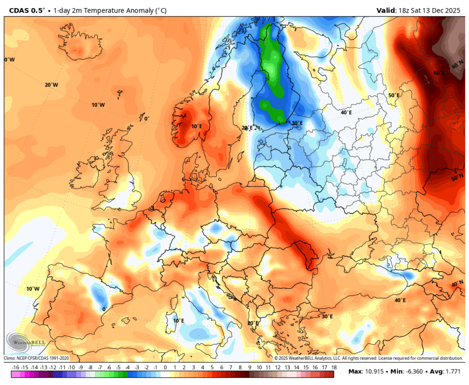 Вообще-то, нет - максимальная аномалия на юго-западе Норвегии и Швеции. |
