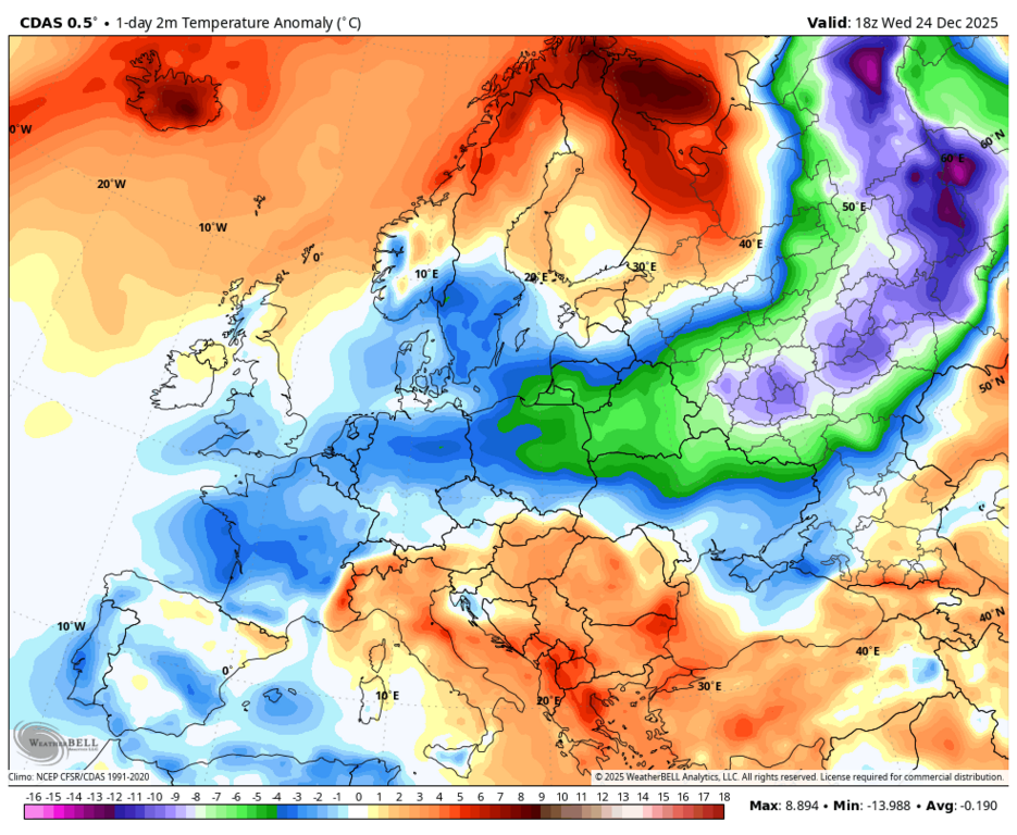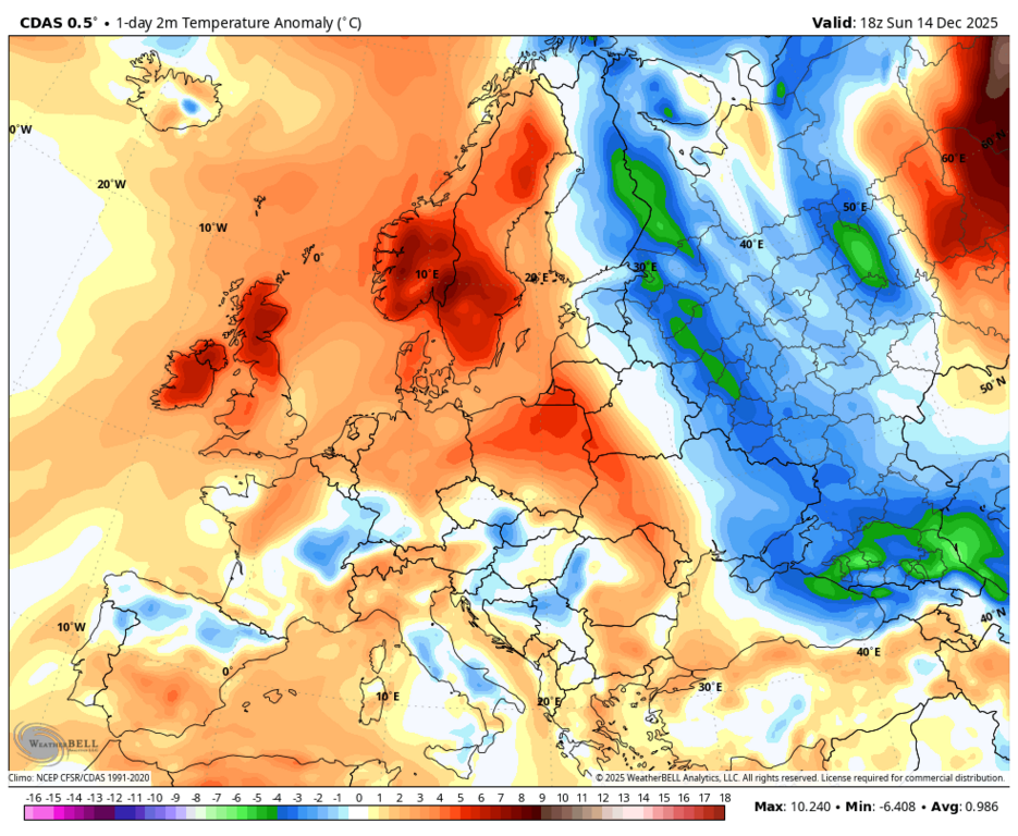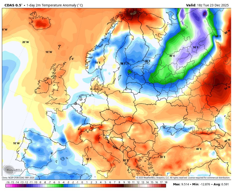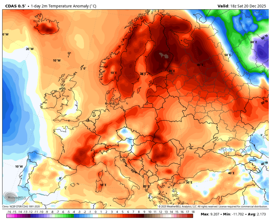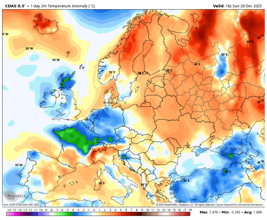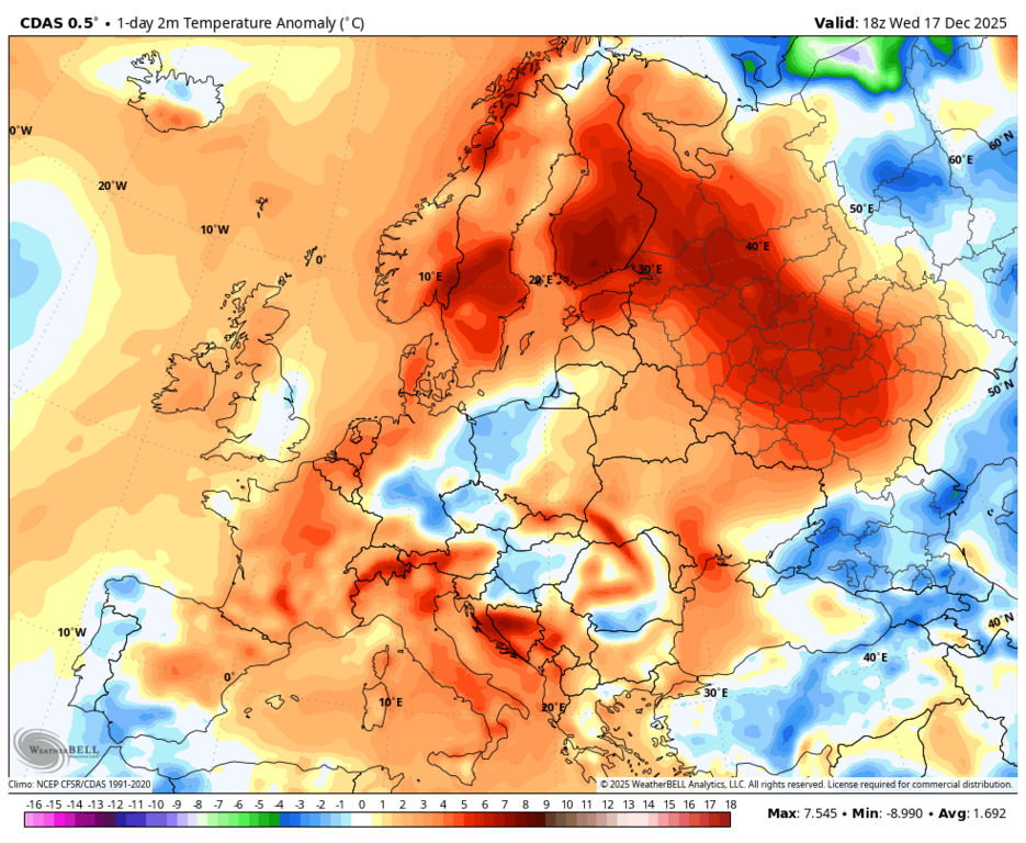 Вообще-то, нет - максимальная аномалия на юго-западе Норвегии и Швеции. |