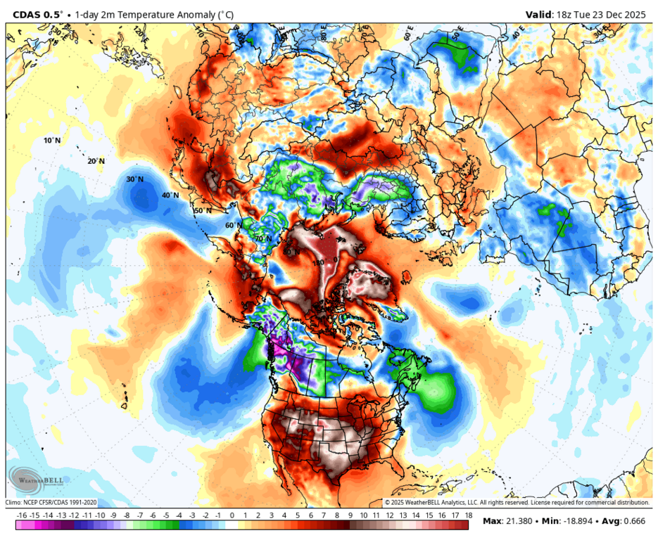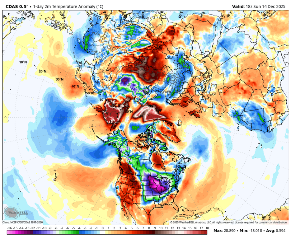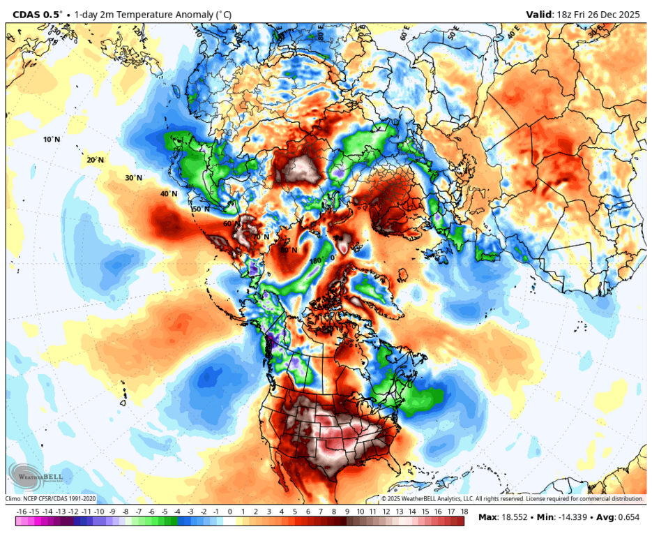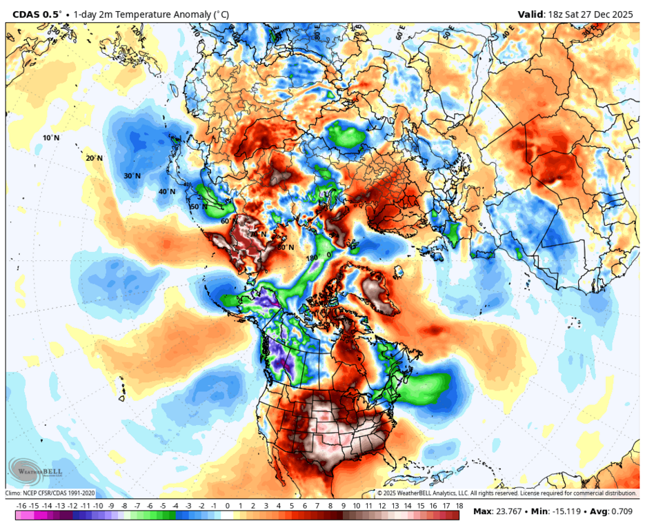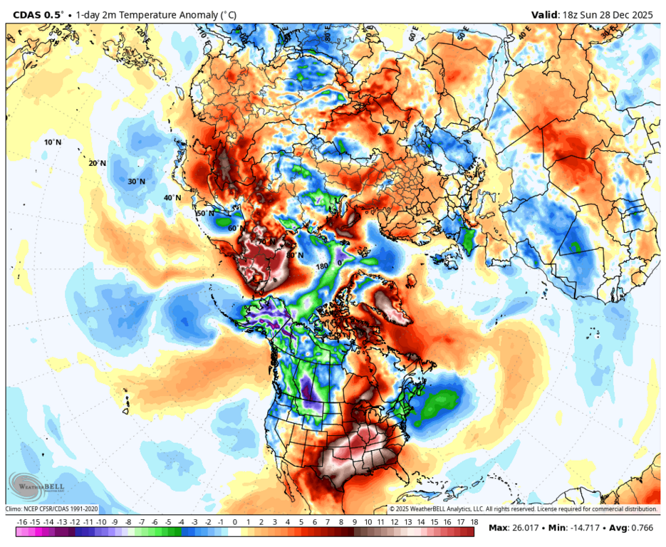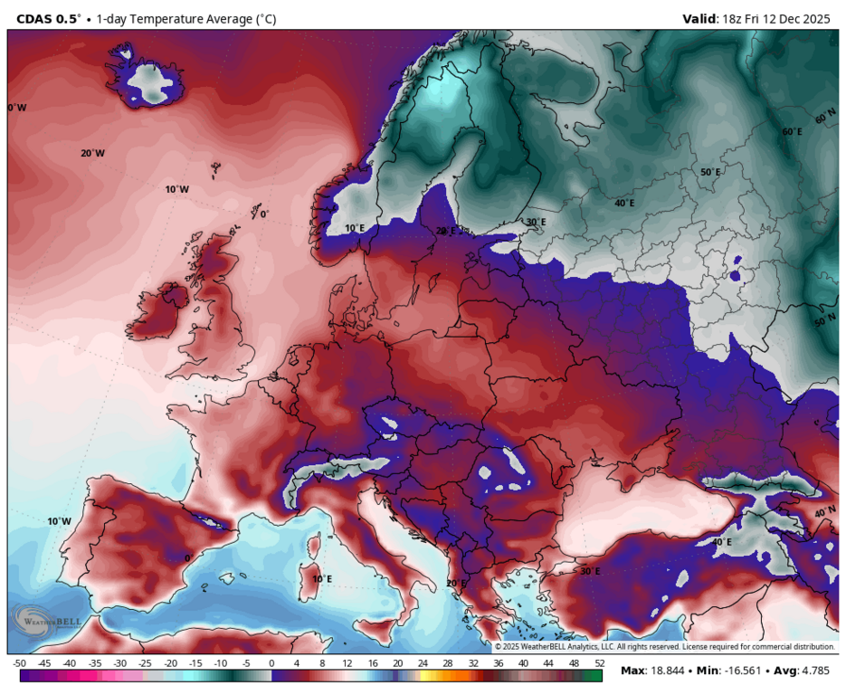 Вообще-то, нет - максимальная аномалия на юго-западе Норвегии и Швеции. |