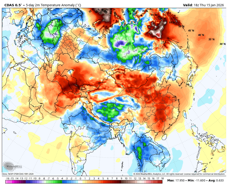 | Sahara 2026-01-16 09:13:38 | Демагог. То суточные аномалии кидаешь, как доказательство чего-то, то карты пентад, а показать картину в целом - вот что было за 15 суток в среднем?