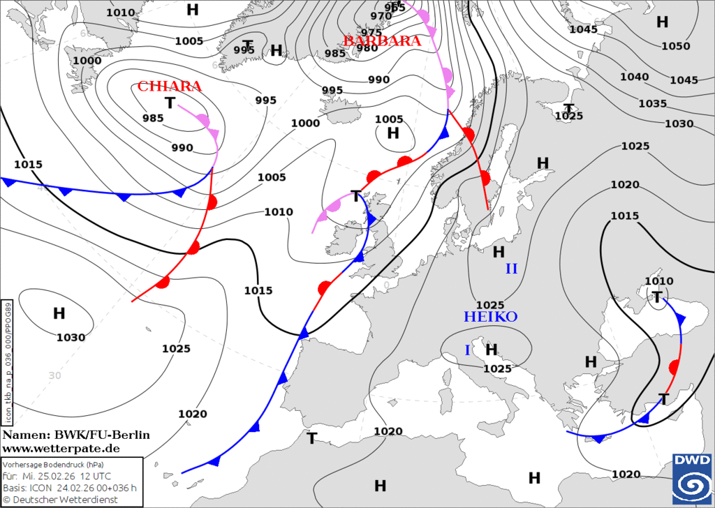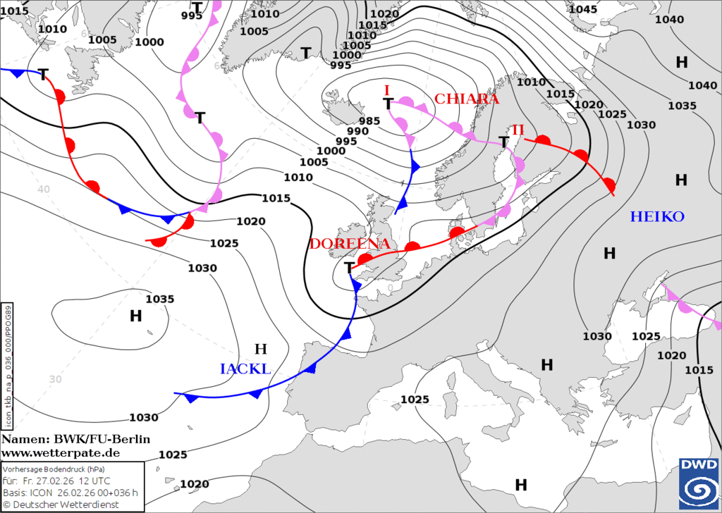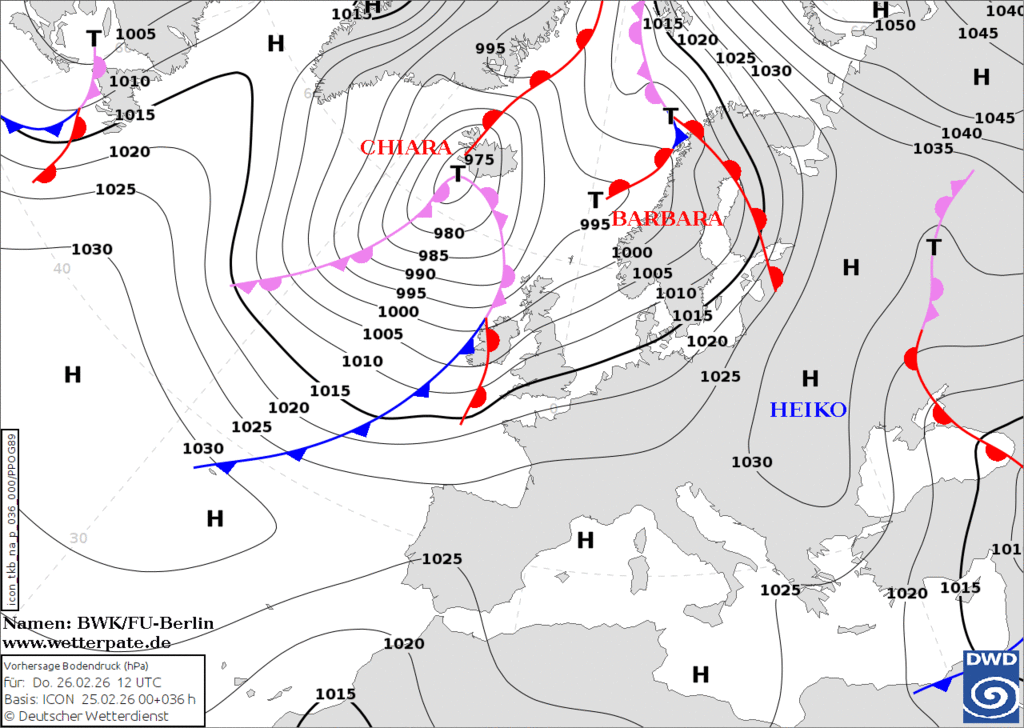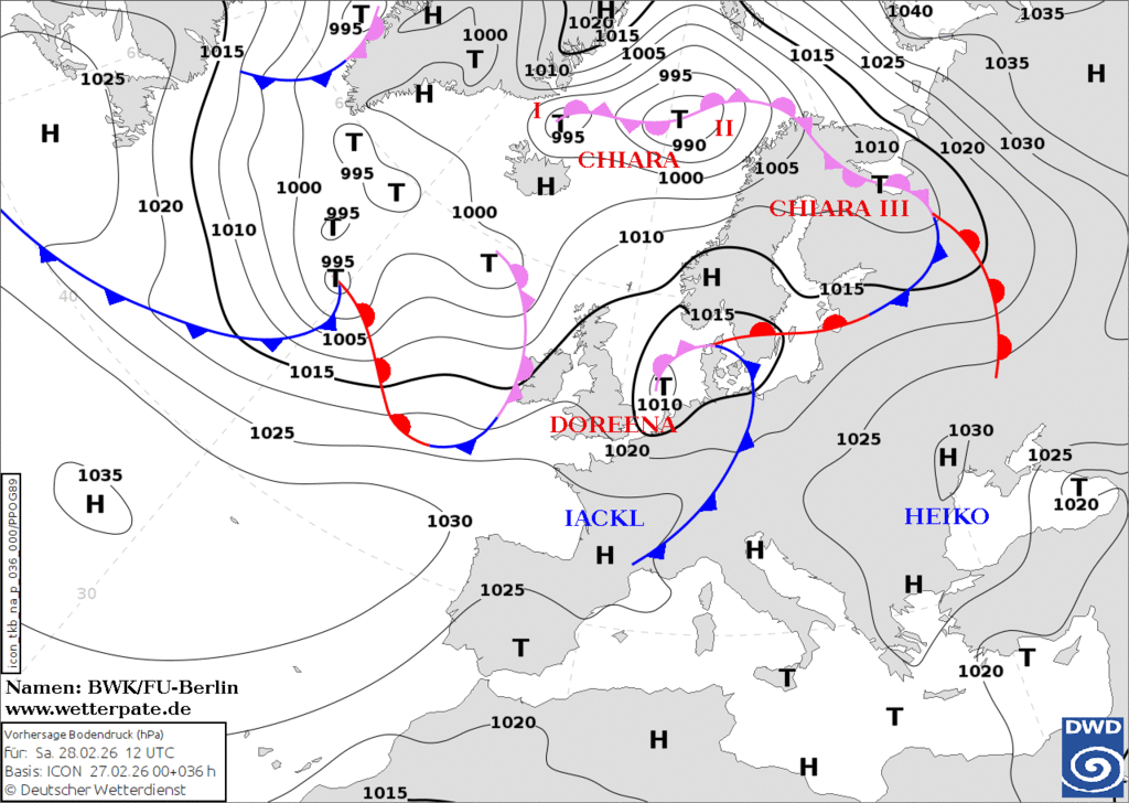В прогнозе осадки всех видов, в том числе замерзающие на теплом фронте циклона Чиара третья. |